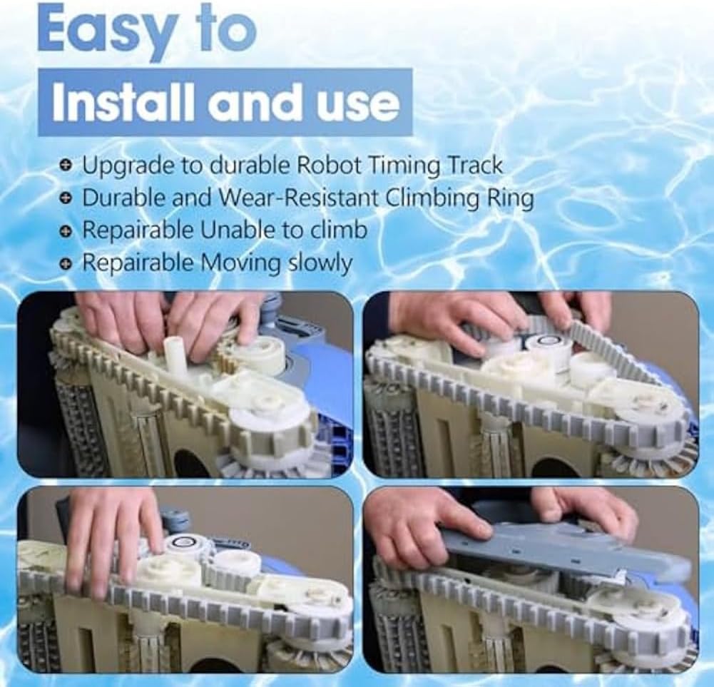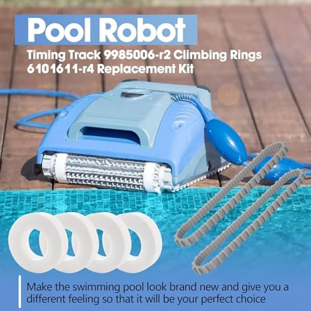 Per i pezzi di pulizia della piscina: i nostri pezzi di pulizia per robot piscina sono inclusi nella confezione con tutti gli anelli da arrampicata 6101611-R4, confezione da 4 pezzi, binario temporale 9985006-R2, confezione da 2 pezzi, 4 ruote guida con 2 pulegge, numero parte 3884997-R6, adatto anche per Triton (vecchio), per Deluxe 4/5, per Plus, per Plus, Wave 65, per Endeavor, per Edge, per HD, per (), per , per , 3001, 2X2, per Wave 2X2, per Prowler 820/83... Adatto per la piscina Cleaner Combo Pack: il set di ricambio per anelli da arrampicata e guida è compatibile con i componenti di ricambio automatici per piscine robot come M200, M400, M500, CC Plus, DX3, DX4, DX6 XL. (Adatto per la maggior parte delle serie di detergenti). Si prega di verificare il modello del dispositivo prima di ordinare. Materiali di alta qualità: per il set di schiuma da parete della girante. I nostri anelli da arrampicata sono realizzati in gomma resistente che permette al robot di funzionare in modo efficiente e durare più a lungo. Sono perfetti per mantenere la piscina sicura e funzionale.