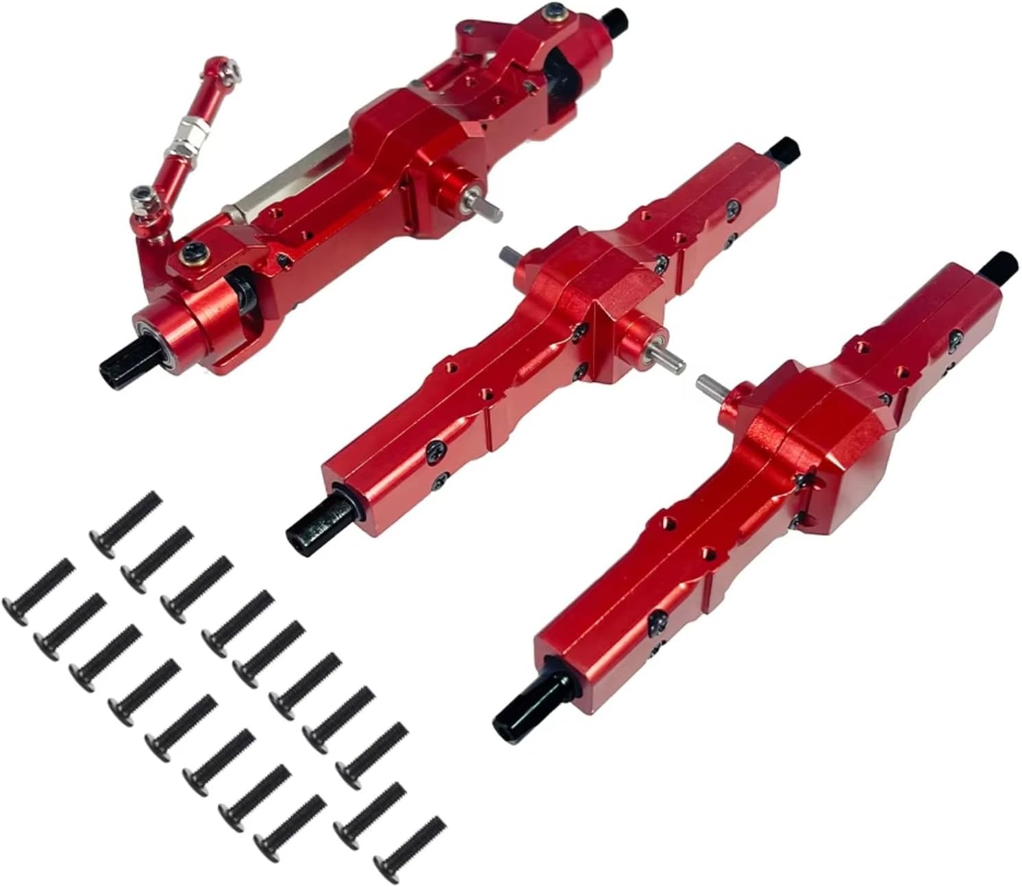 Materiale: gli assi anteriore e posteriore sono realizzati in metallo, lavorati a CNC e trattati appositamente per una superficie liscia. Sono facili da aggiornare: la struttura e il materiale di questi assali anteriore e posteriore migliorati sono progettati per una maggiore rigidità e quindi offrono maggiori prestazioni rispetto ai modelli precedenti. Hanno meno probabilità di rompersi nel punto di sterzo, con conseguente miglioramento delle prestazioni e maggiore durata. Lavorazione: questi assali anteriori e posteriori prodotti professionalmente sono aggiornamenti per il tuo modello di auto. La scelta migliore: Realizziamo ogni prodotto con la massima cura; Che tu stia gareggiando o semplicemente per divertimento, soddisferemo le tue esigenze e ci assicureremo che tu possa goderti ogni secondo; Servizio:Se riscontri problemi, nessun problema; Contattaci e ti aiuteremo a risolverlo con un servizio professionale;