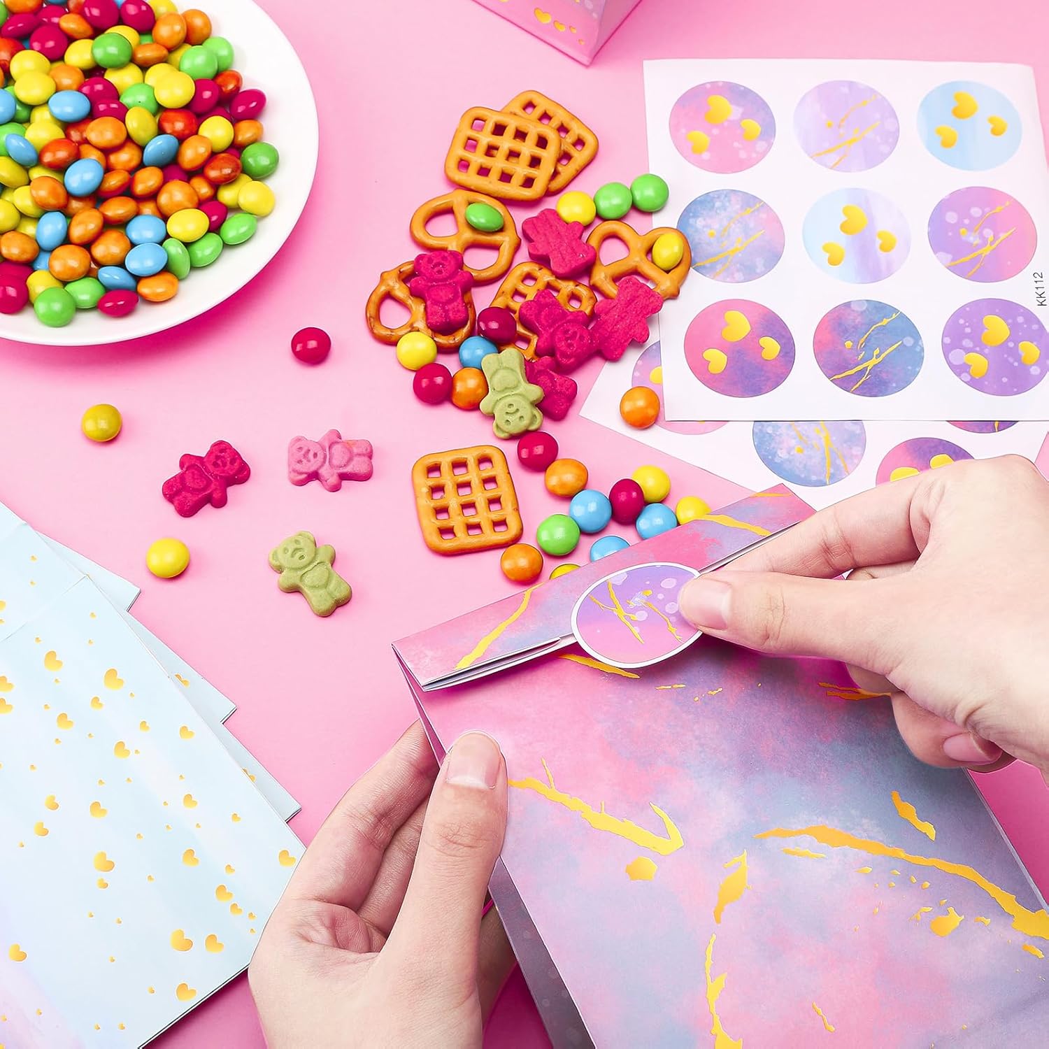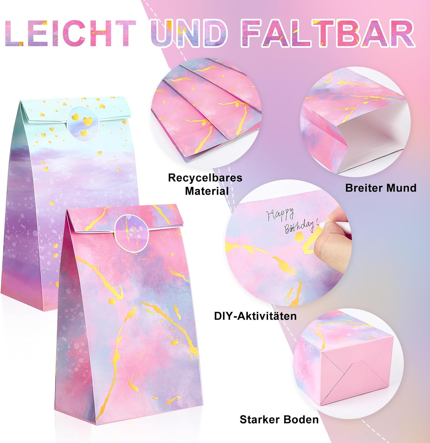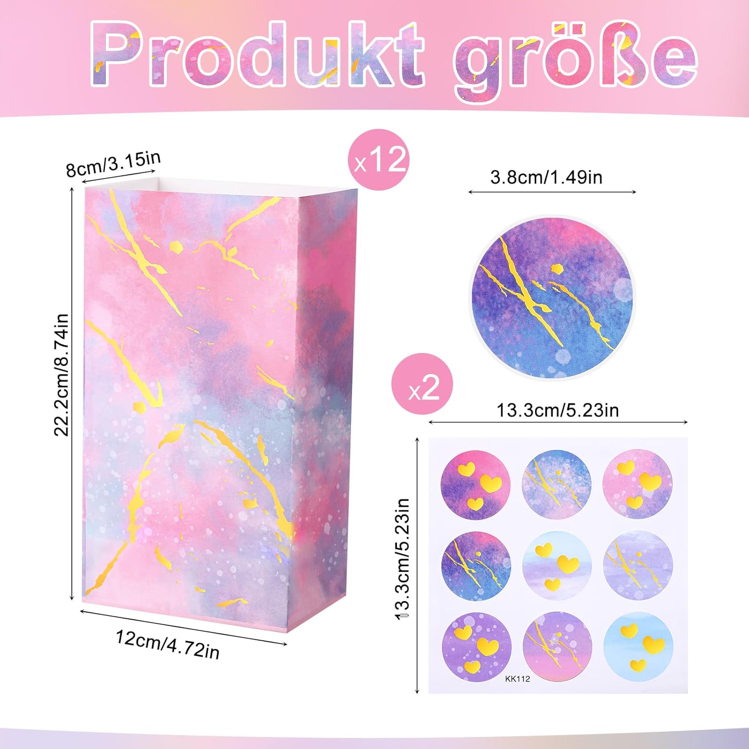 Set di sacchetti regalo arcobaleno: riceverai 12 sacchetti regalo arcobaleno (2 modelli), 18 adesivi; sacchetti regalo colorati accuratamente combinati con adesivi sigillanti, avvolgi i tuoi regali e sorprendi il destinatario del sacchetto regalo Materiale - Questi sacchetti regalo colorati per caramelle sono realizzati in carta kraft di alta qualità, che è inodore, durevole, non facile da danneggiare, facile da piegare e aprire e riutilizzabile, il che li rende molto adatti per confezionare regali preparati con cura Dimensioni - Ogni sacchetto regalo arcobaleno misura 22 x 12 x 8 cm e la dimensione dell'adesivo è 3,8 cm. Il sacchetto regalo può essere utilizzato per confezionare piccoli oggetti come torte, caramelle, biscotti, pane, frutta o piccoli ripieni di giocattoli. L'adesivo viene utilizzato per sigillare il sacchetto regalo in modo che non cada nulla. Sacchetti regalo multiuso: questi sacchetti regalo colorati possono essere utilizzati non solo come sacchetti per imballare vari piccoli giocattoli e regali, ma anche per conservare vari alimenti come frutta, pane, dolci, torte, ecc. Sono sacchetti regalo essenziali per famiglie e festival. Occasioni applicabili: questi sacchetti regalo arcobaleno sono molto adatti per compleanni, Halloween, Ringraziamento, Natale, festa della mamma, Pasqua, matrimoni, picnic, feste, ecc. confezioni regalo; Design unico a colori tie-dye, adatto per compleanni di bambini, baby shower, lezioni di artigianato scolastico e altre attività