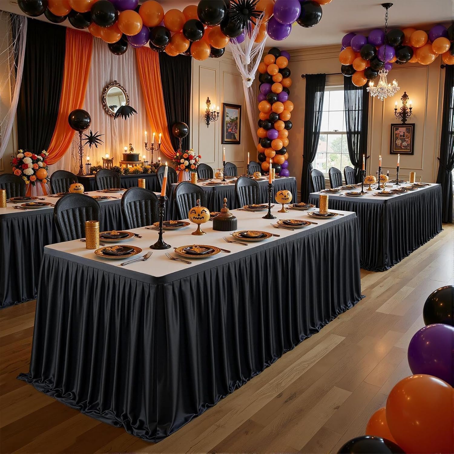 Ampie applicazioni: ideale per Halloween, Natale, matrimoni, compleanni, battesimi, carnevali, banchetti e lauree. Dona ad ogni evento un'atmosfera elegante attraverso opzioni di decorazione flessibili per diverse occasioni. Eleganza arruffata senza tempo: ottieni un look impressionante con l'esclusivo grembiule da tavolo plissettato: dona alle feste un'eleganza senza tempo e un carisma sofisticato. Durata comprovata: realizzato in robusto tessuto di poliestere per una durata affidabile con una superficie morbida. Il riutilizzo multiplo per varie occasioni garantisce prestazioni costanti e un aspetto elegante. Posizionamento pratico: la striscia adesiva con sistema a clip permette di fissare l'orlo della tovaglia in pochi secondi, eliminando completamente inutili lavori di montaggio. Si ripone risparmiando spazio: ripiegando quello rettangolare quando non viene utilizzato, rimane compatto, è subito pronto per essere riposto e occupa molto spazio.