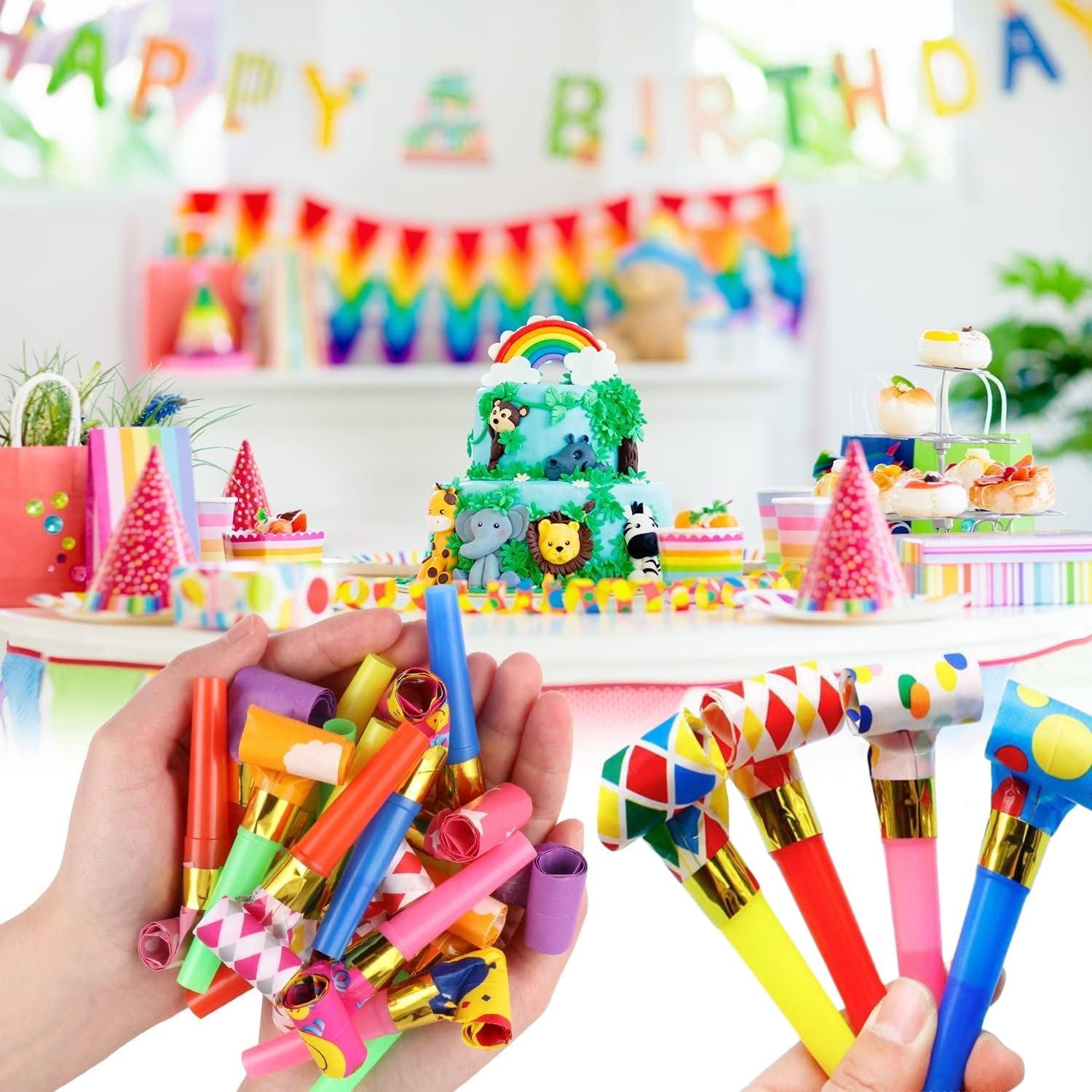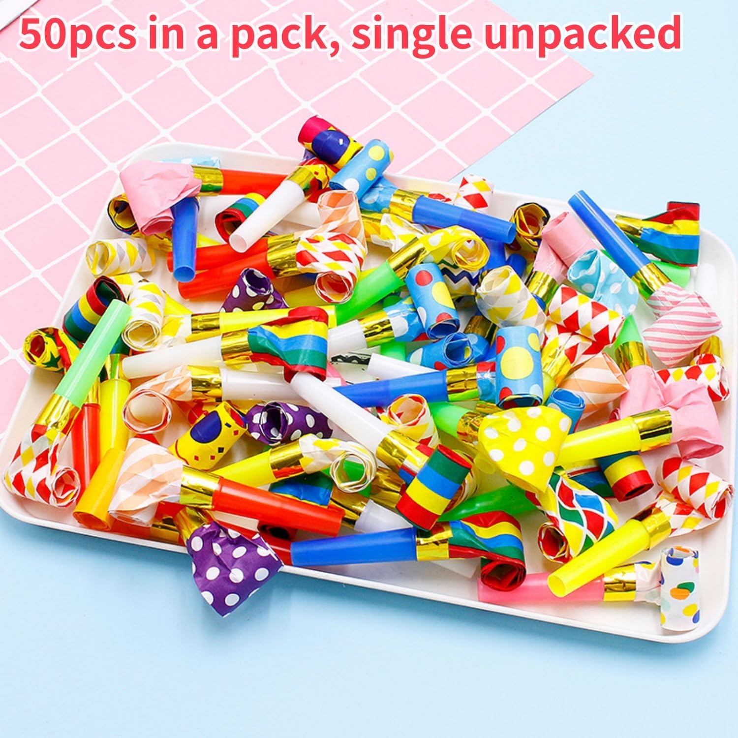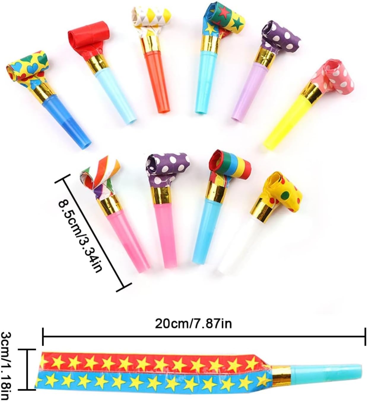 Colori vivaci: La confezione contiene 50 pezzi, molti noiser blaster colorati, i colori sono tutti assegnati in modo casuale, rallegrano i festival e i momenti di festa più emozionanti. Materiale: Questo fischietto per feste è realizzato in plastica ecologica e materiale cartaceo, non tossico e innocuo, resistente all'usura e riutilizzabile. Dimensioni: Cappelli partito aria fischio corno estendibile lunghezza 23cm/9inch, lunghezza retrattile 8cm/3.1inch, diametro 1cm/0.39inch, di medie dimensioni, molto adatto per i bambini. Design raffinato: Questo soffiatore per feste è un giocattolo creativo divertente e stravagante. Il suo scarico emette un suono forte e divertente quando si apre. Il rullo del fischietto si espande istantaneamente e rimbalza automaticamente quando non soffia. L'aspetto colorato attira facilmente l'attenzione dei bambini. Ampia applicazione: Fischietti adatti a tutti i tipi di feste e occasioni, come. Matrimoni, compleanni, baby shower, addio al nubilato, feste di laurea, Natale, Halloween e altro ancora per portare colore e divertimento alla festa.