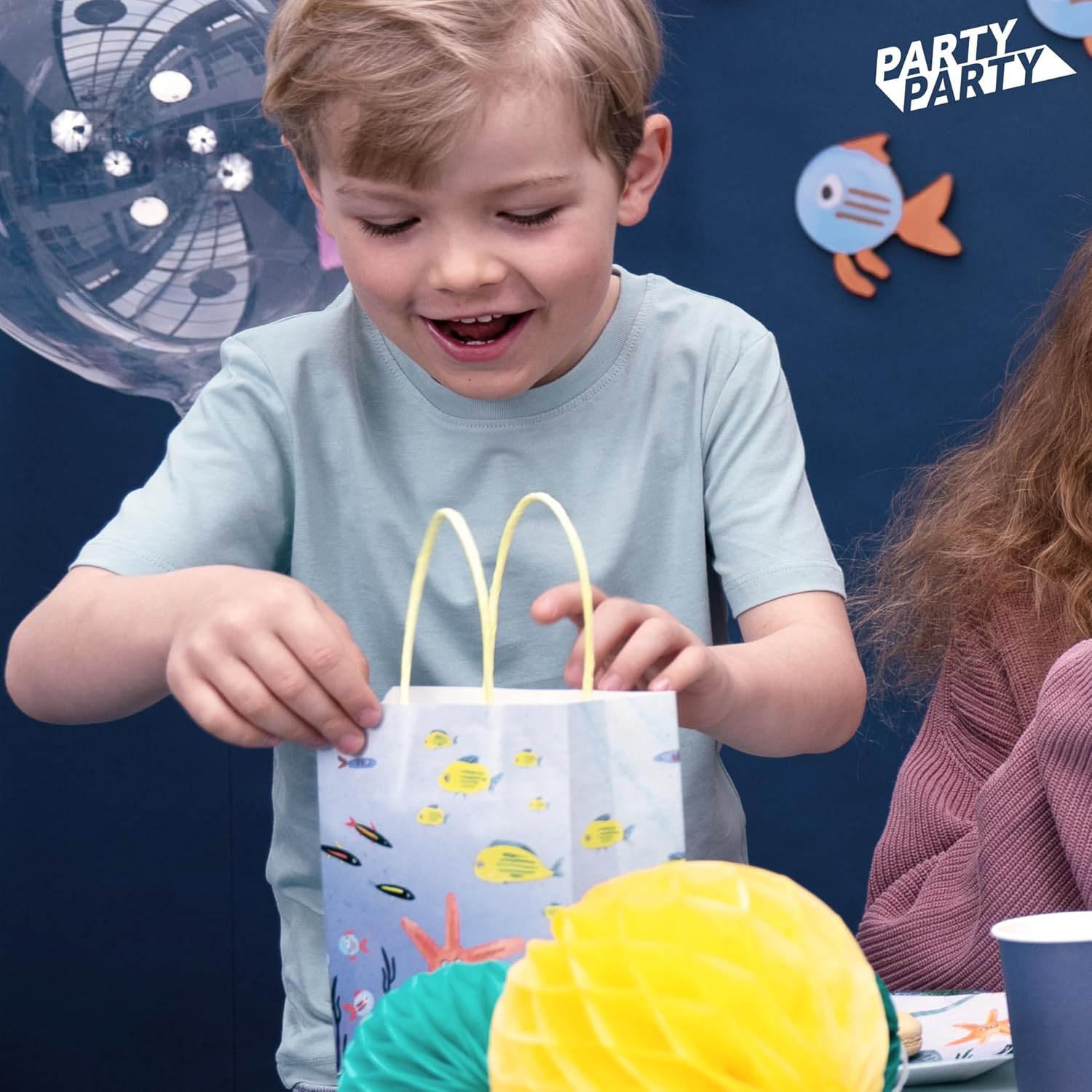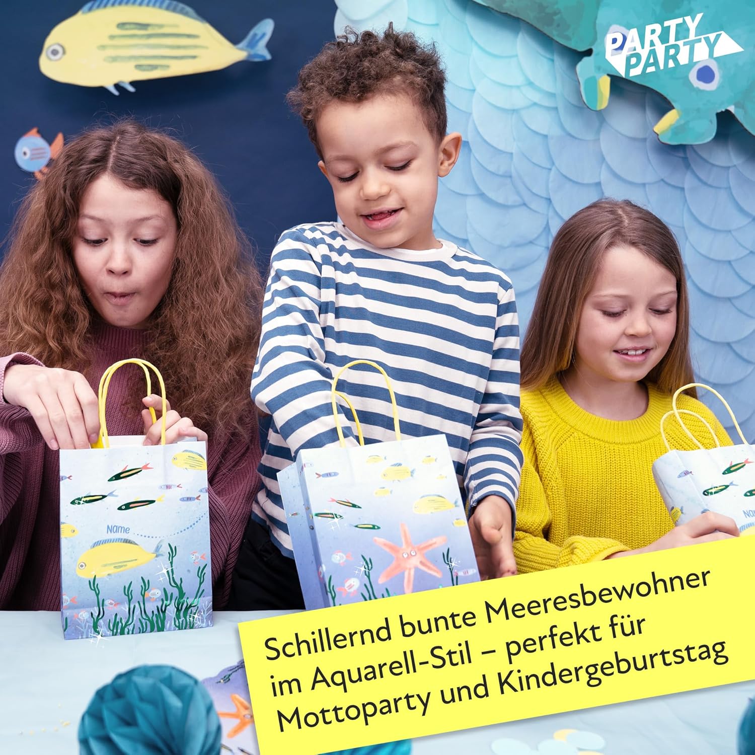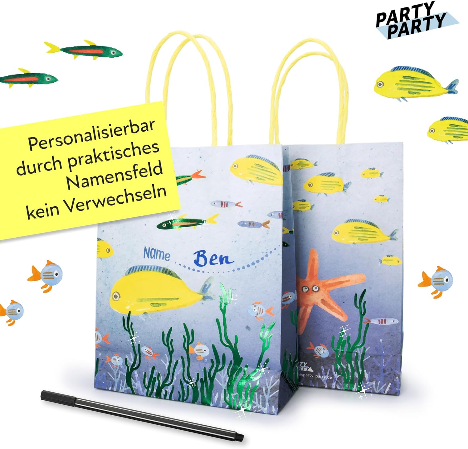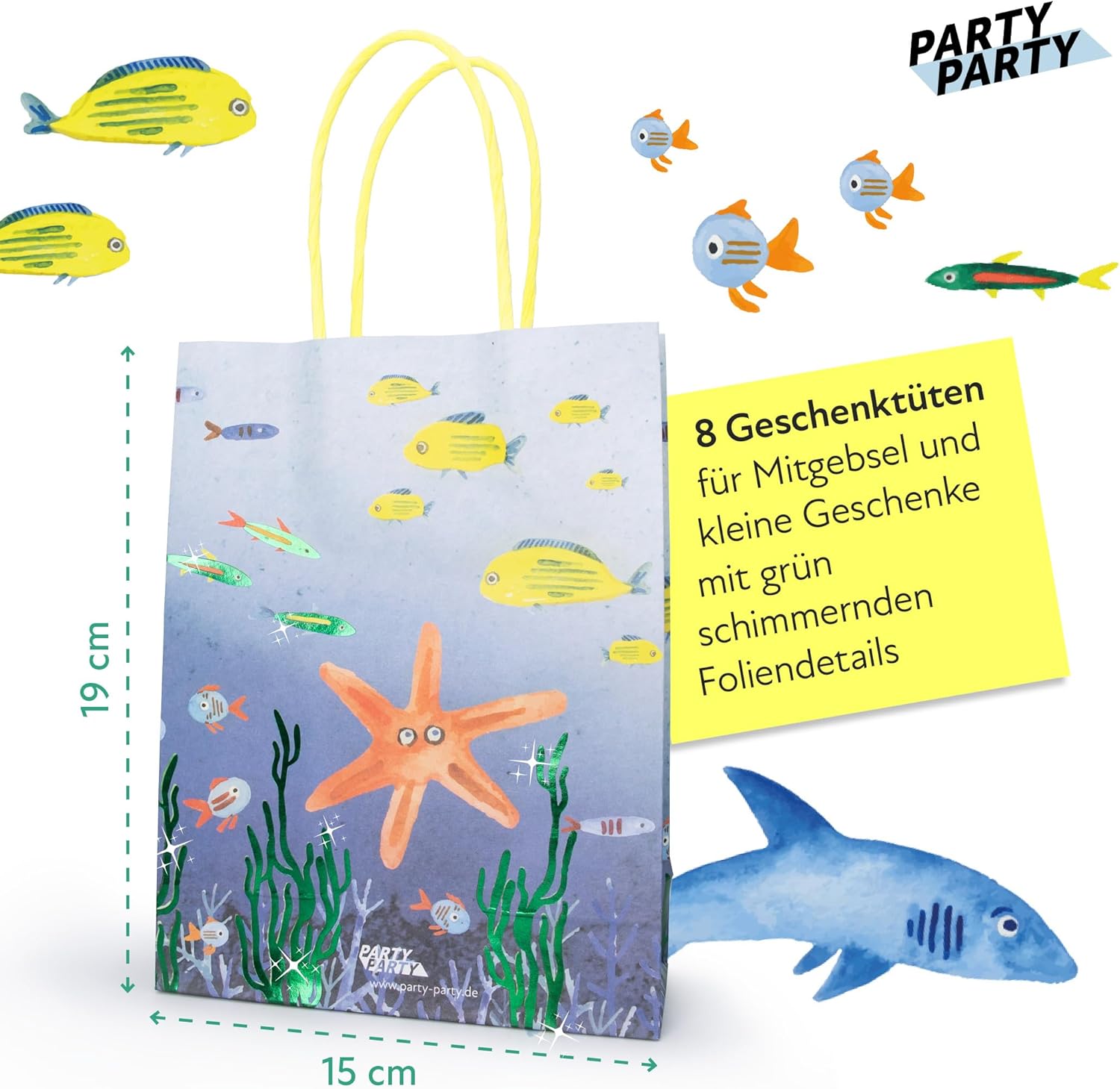 【REGALA IL REGALO DELLA GIOIA】 Che tu stia cercando sacchetti regalo per una festa di compleanno per bambini o desideri confezionare bomboniere per una festa sull'oceano, i nostri sacchetti di carta marittima sono la soluzione perfetta per omaggi, sacchetti per feste, dolcetti e regali per gli ospiti. 【BORSE SUBACQUEE SCINTILLANTI】 Immergiti insieme sotto il mare alla tua prossima celebrazione marittima e scopri la bellezza delle creature marine: squali, razze, pesci e polpi. I piccoli pesci e le alghe nel mare brillano di verde grazie ai dettagli in lamina lucida. Con le creature marine in stile acquerello, i sacchetti regalo marittimi sono perfetti per la vostra decorazione oceanica. 【ALTA QUALITÀ】 I nostri robusti sacchetti regalo sono realizzati in carta resistente. Le maniglie sono fissate saldamente in modo da poter trasportare i tuoi regali in sicurezza. 【PERSONALIZZABILE】Scrivi semplicemente il nome del destinatario nel campo del nome prestampato e tienilo tracciato con i tuoi ospiti della festa. 【 PRATICO PACCHETTO DA 8】 8 sacchetti di carta blu con manico in corda gialla, pesci luccicanti ed erba marina (19 x 15 x 6 cm), confezionati igienicamente 【 PERFETTI PER BORSE DA FESTA E BOMBONIERE PER LE FESTE 】 Che si tratti di sacchetti per feste oceaniche per adulti, sacchetti di compleanno per animali marini per feste di compleanno per bambini o bambine nell'acquario dello zoo, bomboniere per comunioni, piccoli Sacchetti di carta per cresima o sacchetti regalo marittimi per battesimo - i nostri sacchetti regalo subacquei sono l'aggiunta ideale alla decorazione della festa sull'oceano o al compleanno dei bambini delle creature marine. 【FESTEGGIAMO! 】🎉📸 Condividi con noi i tuoi momenti PARTY PARTY! Carica le tue foto più belle della tua celebrazione nelle recensioni e ispira gli altri.