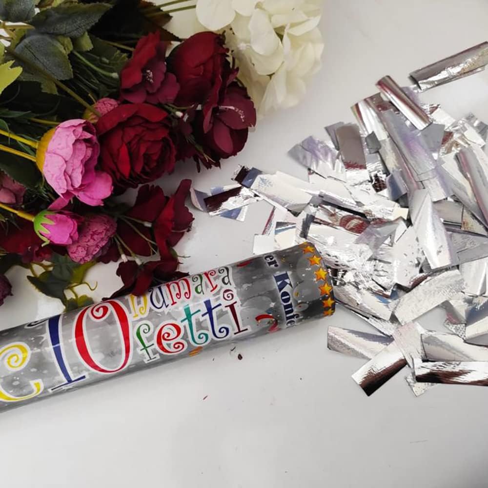 Party popper coriandoli, party popper 30 cm ARGENTO, altezza effetto 5m, spara coriandoli, spara coriandoli, spara coriandoli per capodanno, compleanno, feste private, celebrazioni private, party, coriandoli, coriandoli (4) CONFETTI