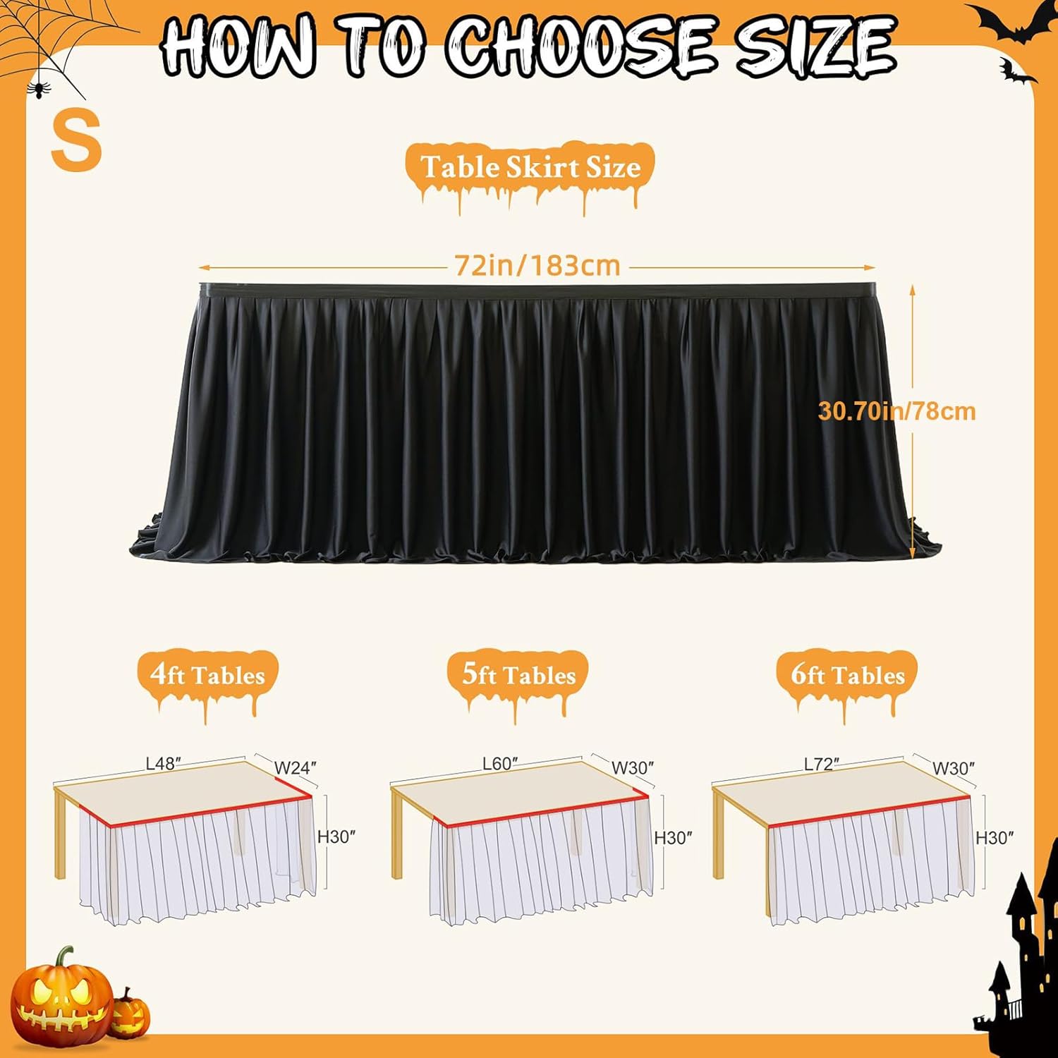 Decorazione pratica: progettata per Halloween, Natale, matrimoni e riunioni di famiglia. Miglioramento dello stile semplice per le festività adattandosi senza sforzo a diversi tipi di eventi Aggiornamento elegante: trasforma la tua razione senza sforzo: l'esclusivo design con volant pieghettato garantisce un look sofisticato e porta l'atmosfera di qualsiasi evento a un nuovo livello Durata comprovata: realizzato in robusto tessuto di poliestere per una durata affidabile con una superficie morbida. Il riutilizzo multiplo per varie occasioni garantisce prestazioni costanti e un aspetto elegante. Fissaggio semplice: la speciale striscia adesiva e la clip garantiscono un fissaggio rapido del bordo del tavolo e garantiscono una perfetta aderenza durante l'uso con il minimo sforzo. Risparmio di spazio: piega e riponi semplicemente: il rettangolare si ripiega per risparmiare spazio quando non in uso: ideale per riporre e risparmiare spazio prezioso per eventi o riunioni futuri.
