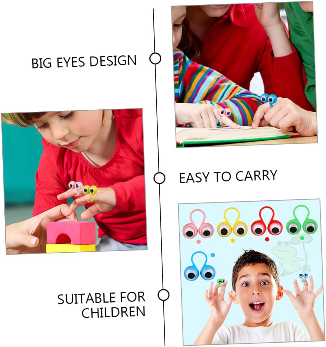 Il pacchetto include giocattoli ad anello a forma di bulbo oculare Caratteristiche - Materiale: giocattoli ad anello in plastica - Dimensioni: 3,50X3,00X1,50 cm/1,38X1,18X0,59 pollici giocattolo a forma di bulbo oculare -Un bel per i vostri , lo apprezzeranno sicuramente. Inoltre, potete giocare con questi giocattoli con le marionette da dito dei vostri . -I possono giocare senza il rischio di farsi male perché tutti i bordi sono lisci e non c'è alcuna superficie ruvida del giocattolo a forma di occhio. - Lascia che i tuoi stiano lontani videogiochi e vivano una vita più sana. Tanti giocattoli da condividere e giocare con gli amici: marionette da dito. - Il giocattolo con l'occhio sull'anello può attirare l'attenzione dei , rendendoli felici. Un interessante giocattolo con l'occhio sull'anello può essere usato per le dita. -Aiutare i a usare la loro immaginazione per creare il loro mondo interiore è una buona scelta per le marionette da dito di amici e familiari. - Giocattolo per le dita con assortiti Descrizione della merce giocattolo da dito Questi sono giocattoli da dito con anello oculare, realizzati in materiale plastico, delicato sulla pelle e confortevole. Favore per le dita di Halloween Ottimi giocattoli per e interattivi. Giocattoli con marionette da dito Puoi usarli per comunicare con i tuoi e la loro capacità di comunicazione può essere migliorata. Giocattolo con marionette da dito Possono aiutare a sviluppare l'immaginazione dei