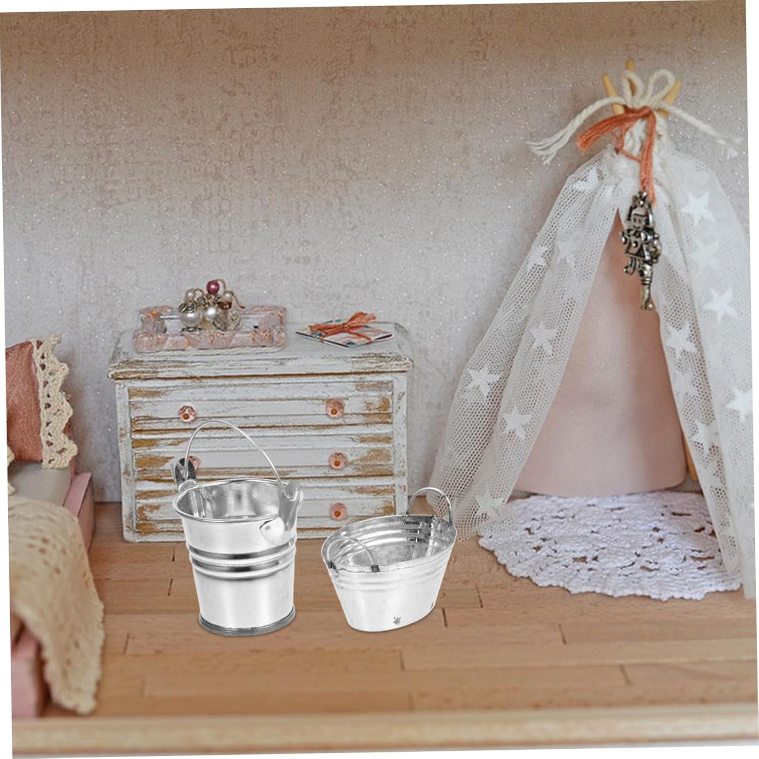 Mini secchio: questo secchio in ferro in miniatura per case delle bambole è un'ottima figura per chi ama la fantasia. Secchio in miniatura: il modello di secchio in miniatura ispira creatività e immaginazione, rafforza la coordinazione occhio-mano, secchio in metallo Il modello mini secchio garantisce, mini secchio Piccolo secchio in ferro con manico: lavorazione e aspetto realistico, e il piccolo secchio può attirare l'attenzione nella casa delle bambole, mini secchio della casa delle bambole