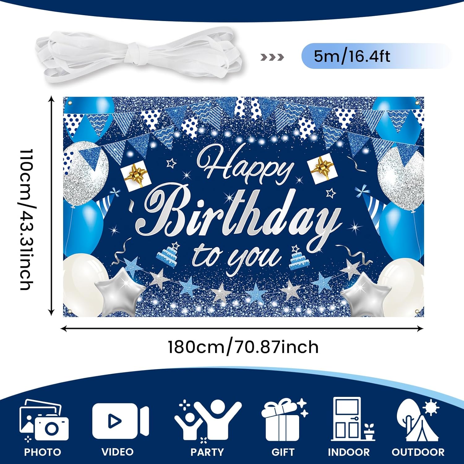 [Design speciale]: il banner di compleanno è stato progettato da designer professionisti. Con diversi design di compleanno come torta di compleanno, palloncini, confezione regalo, ecc. Lascia che il delicato striscione di compleanno decori la tua festa. [Specifiche]: la dimensione dello striscione di buon compleanno è: 180 x 110 cm / 70,9 x 43,3 pollici. [Materiale eccellente]: lo striscione di compleanno è realizzato in tessuto di poliestere molto spesso e resistente. Pieghevole, lavabile, resistente agli strappi e facile da trasportare. [Facile da usare]: lo striscione di compleanno ha 4 anelli di rame e una corda lunga 1,5 m. Puoi tenerlo in mano o appenderlo a casa, giardino, recinzione, muro, albero, ecc. [Garanzia di soddisfazione]: se hai qualche problema con questo banner di compleanno, contattaci via e-mail, lo risolveremo per te! Altri striscioni di compleanno e decorazioni per le feste possono essere trovati nel negozio del marchio PartyYaa.