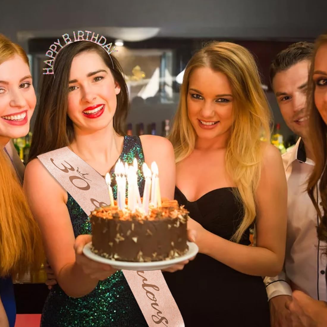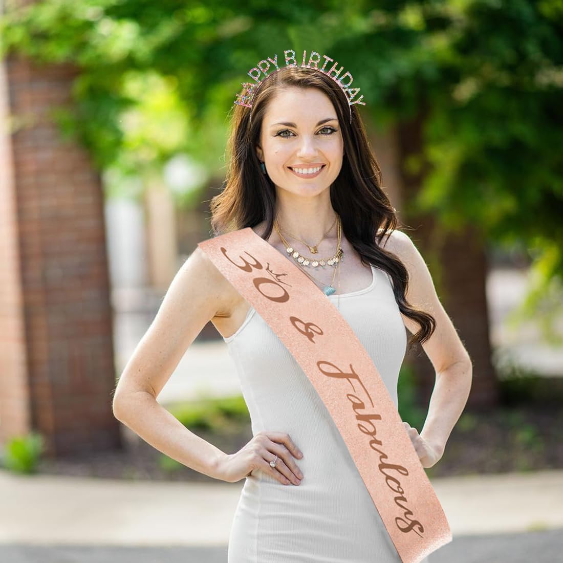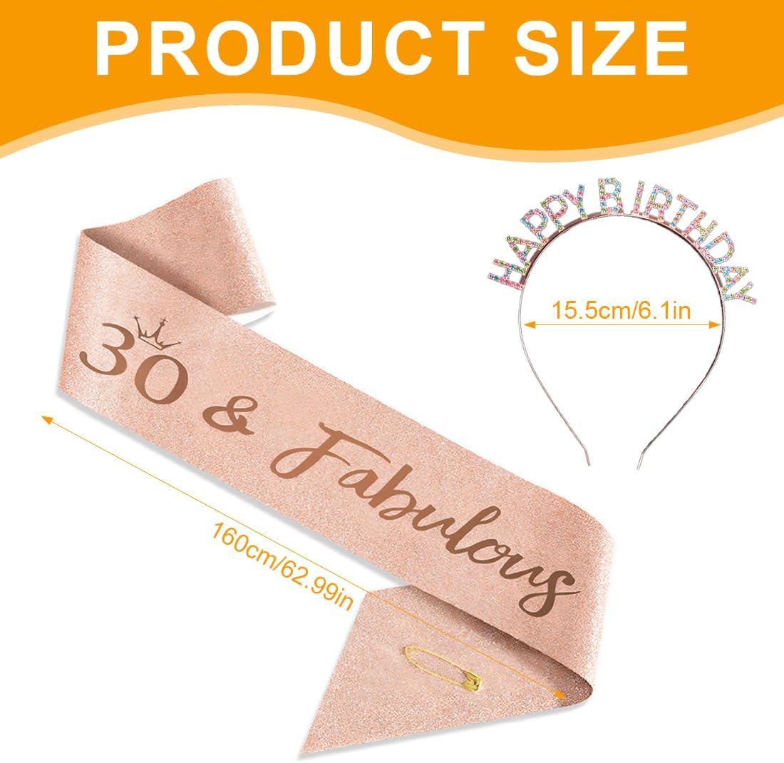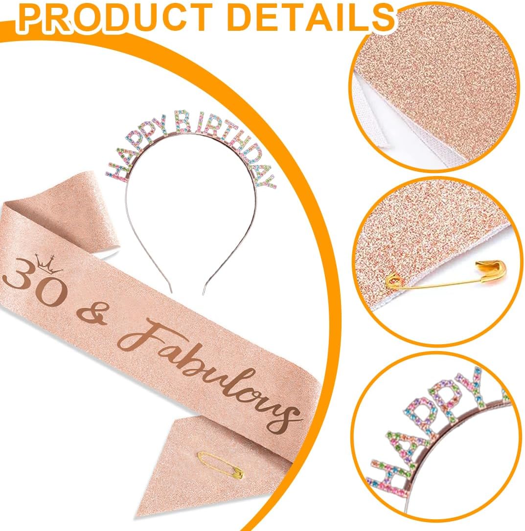 Regalo di compleanno perfetto per le donne: il set fascia e tiara "30 & Fabulous" è il regalo ideale per un'indimenticabile festa del 30° compleanno e aggiunge sfarzo e glamour. Materiali di alta qualità: la fascia è realizzata in morbido tessuto glitterato con lamina goffrata pressata a caldo, mentre la tiara è realizzata in una robusta lega metallica e cristalli che insieme creano un effetto scintillante. Dimensioni regolabili: la fascia misura circa 156 x 10 cm ed è dotata di una clip che consente di adattarla a diverse taglie. La tiara (circa 15 x 16 cm) ha un pratico design a pettine che la mantiene saldamente nei capelli. Elegante decorazione per feste: la fascia glitterata dorata e le lettere in lamina rendono il set un perfetto colpo d'occhio alla festa del trentesimo compleanno e hanno un bell'aspetto nelle foto e su Instagram. Versatile e durevole: ideale per la festa di compleanno, il set rimarrà stabile per tutta la sera e fornirà un'aggiunta elegante e alla moda a qualsiasi outfit.