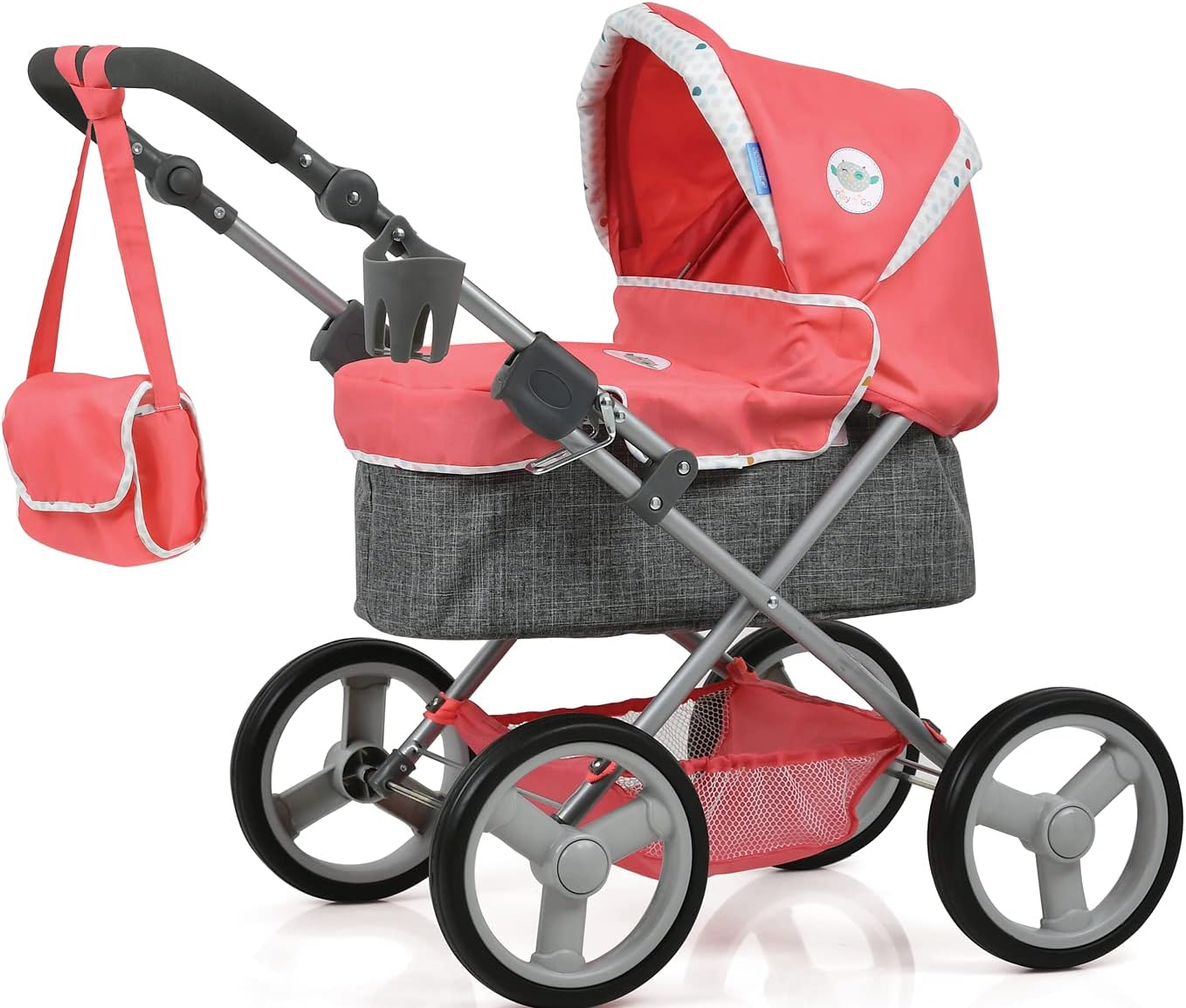 Passeggino giocattolo con dimensioni ideali per i più piccoli. Doppia ruota anteriore girevole. Il passeggino è alto 55 cm di altezza, 33 cm di larghezza e 48 cm di lunghezza. Manubrio imbottito per i più piccoli. Passeggino di alta qualità con disegno resistente e a colori.