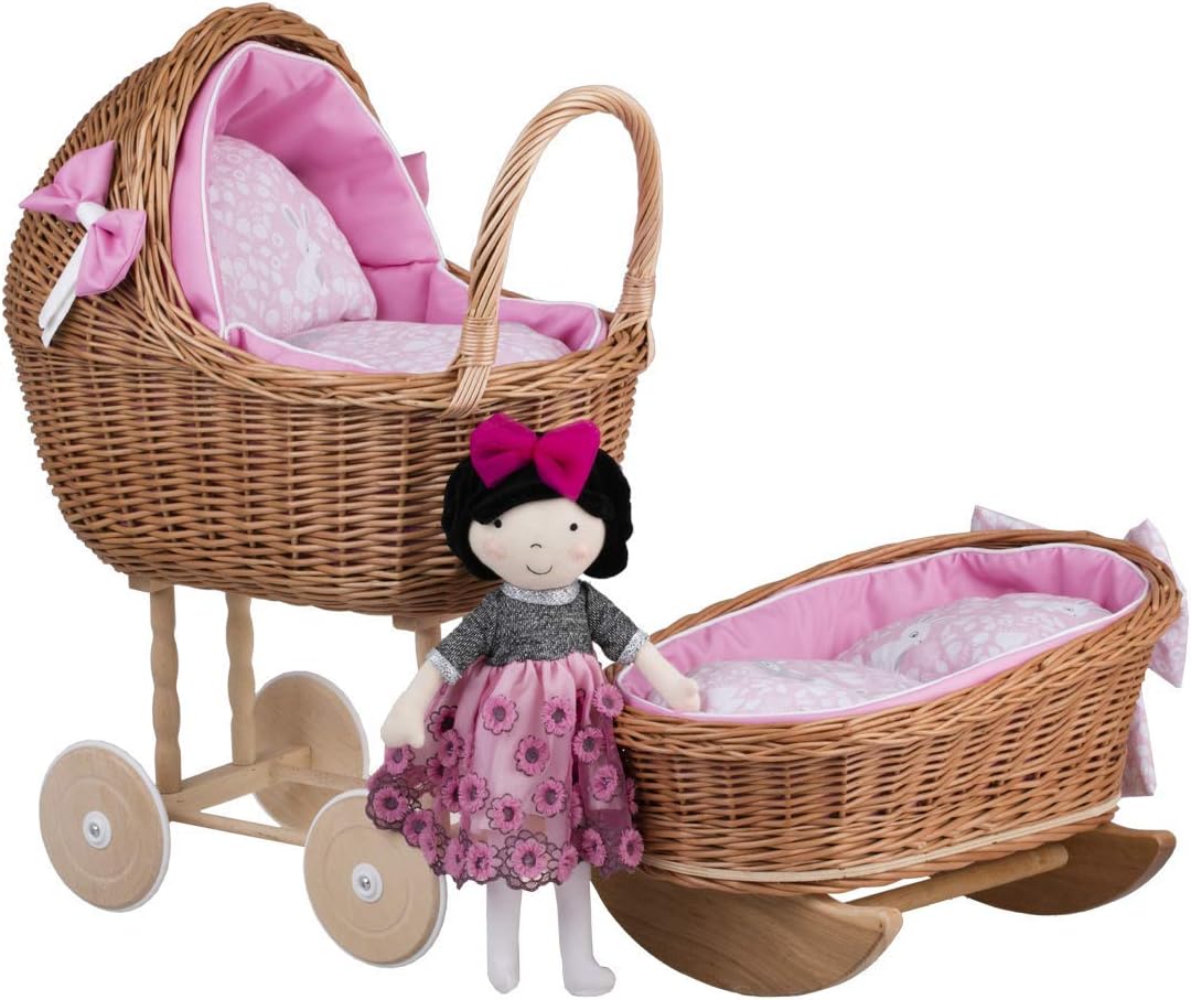 ✔ Un set composto da una carrozzina per bambole e una culla di vimini (con cuscino e coperta per la bambola) è un adorabile giocattolo che delizierà ogni bambina. Il passeggino per bambole e il letto a dondolo in vimini si presentano in un design elegante ed elegante, che conferisce loro un carattere molto speciale. La biancheria da letto colorata è un'aggiunta accattivante al tessuto naturale del cesto e dona a questo giocattolo un tocco di modernità. ✔ Il nostro giocattolo in vimini non è solo bello, ma anche estremamente robusto e stabile come giocattolo. La solida base in legno garantisce un'eccellente stabilità, mentre le ruote gommate consentono una guida fluida su qualsiasi superficie. Il letto per bambole è ideale per le bambine che amano fare passeggiate con le loro bambole. ✔ La carrozzina e il letto per bambole sono intrecciati a mano in vimini in Europa e hanno un bel colore. Il vimini è un materiale molto resistente e robusto che conferisce al giocattolo una bellezza naturale. La lavorazione a mano del cesto conferisce un tocco unico e lo rende un giocattolo speciale che può essere trasmesso di generazione in generazione. ✔ Questo set di passeggino per bambole e culla è un ottimo regalo per la tua cara figlia o nipote. È un giocattolo senza tempo che entusiasma ogni bambino e rappresenta un meraviglioso accessorio per ogni cameretta dei bambini. Il set di cestini è adatto per ogni occasione, sia per compleanno, Natale o semplicemente come piccola sorpresa di tanto in tanto. Questa è una fantastica idea regalo. ✔ Il passeggino per bambole ha le dimensioni di 48 x 28 x 60, la culla per bambole – 46 x 28 cm H25 ed è quindi perfetta per le bambine. Sono leggeri e facili da maneggiare e offrono abbastanza spazio per la bambola preferita. Il passeggino per bambole è un ottimo giocattolo che stimola l'immaginazione e la creatività dei bambini e regala loro ore di divertimento.