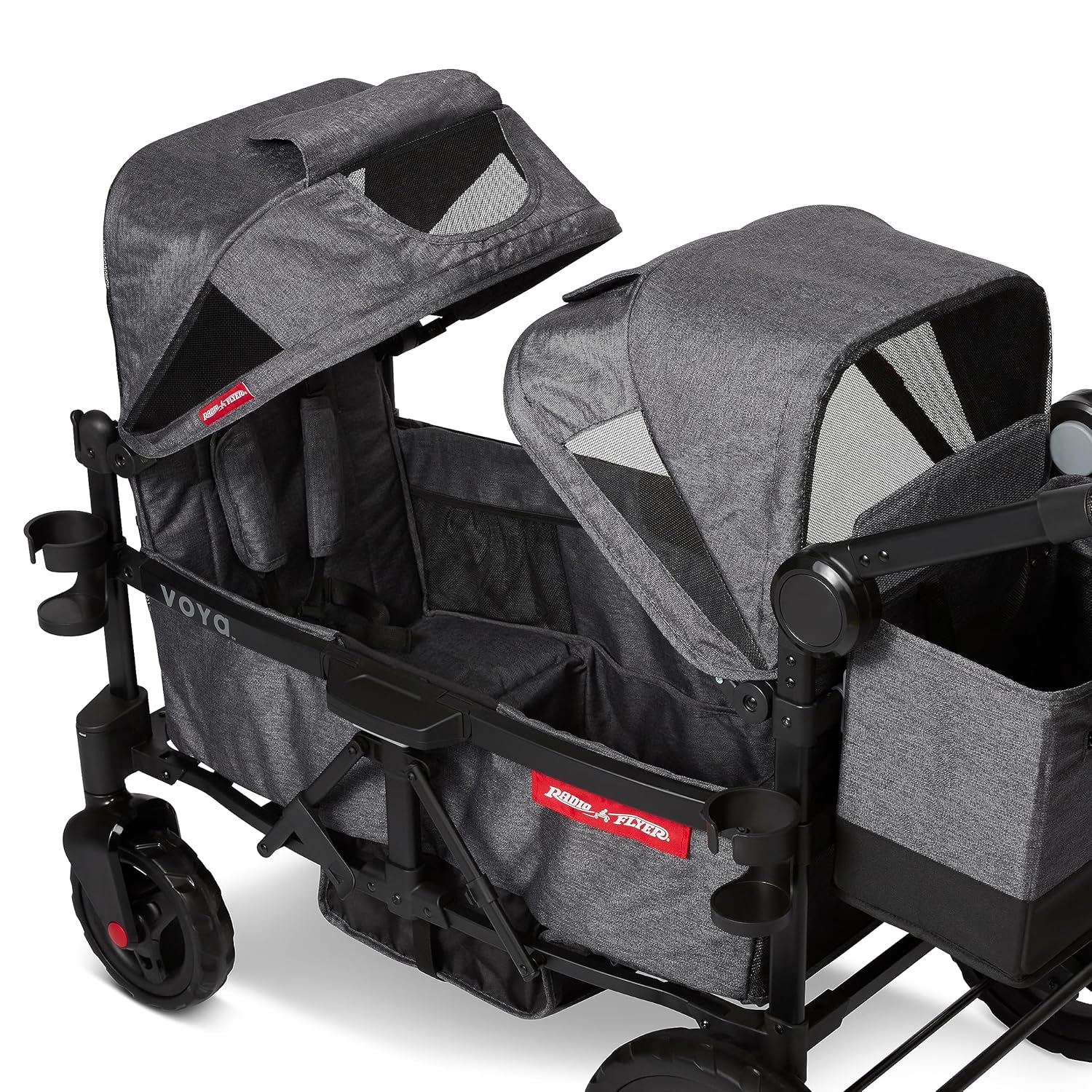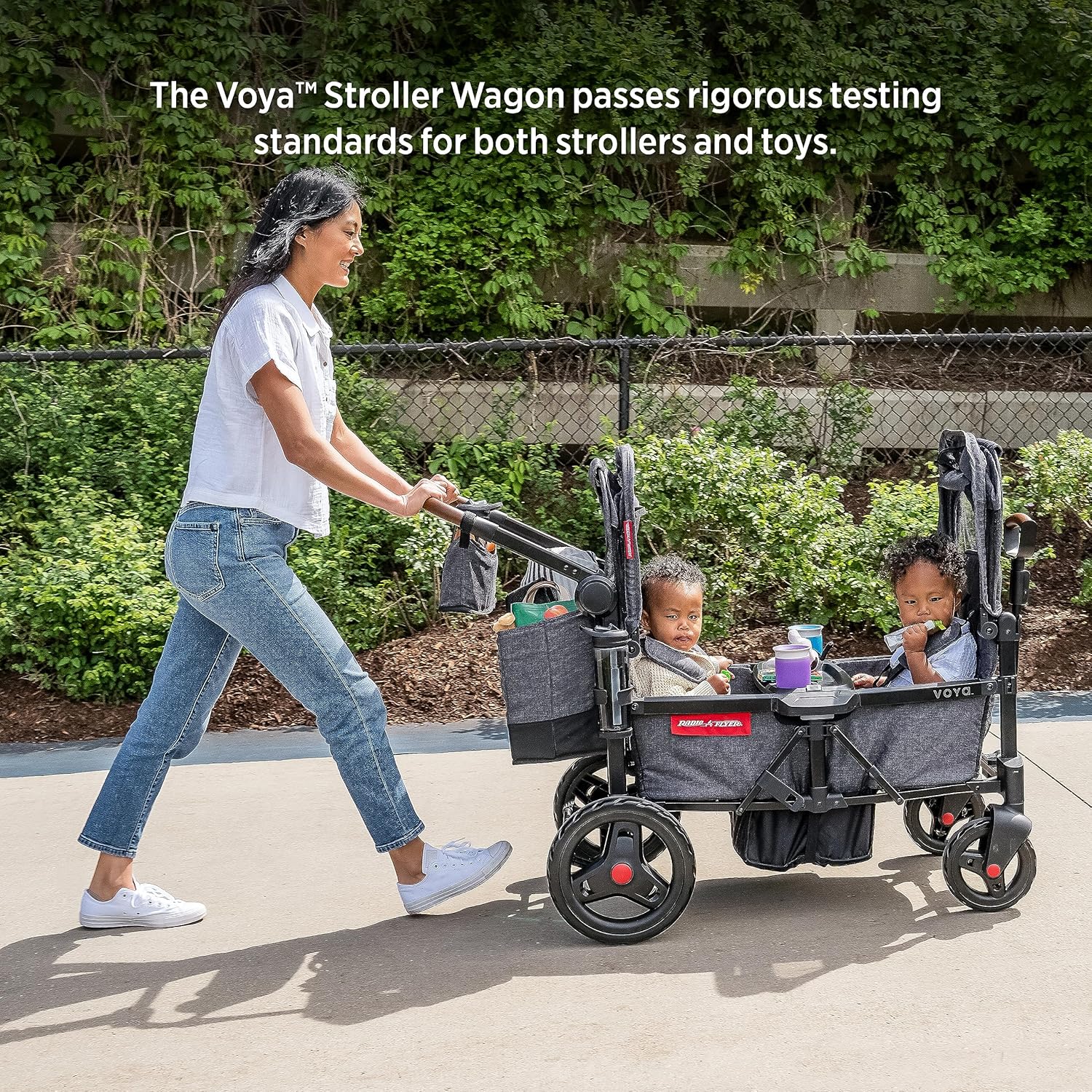 SPINGERE E TIRARE: puoi tirare il passeggino Wagon come un carrello o spingerlo per una comodità ottimale. È dotato di una maniglia per tirare il carrello NeverFall nella parte anteriore e di una maniglia di spinta pieghevole e regolabile in altezza nella parte posteriore. Entrambi i manubri sono realizzati in pelle vegana di prima qualità per un maggiore comfort. ULTRA SPAZIOSO: questo passeggino station wagon include un cestino per gli oggetti essenziali degli adulti, oltre a tasche interne portaoggetti e un vassoio per snack rimovibile con due portabicchieri per i più piccoli. Inoltre viene fornito con una borsa portaoggetti posteriore XL e 2 portabicchieri genitori rimovibili sul telaio. PIEGHEVOLE PER LA CONSERVAZIONE: il telaio leggero in alluminio è resistente e si piega in meno di 5 secondi per riporlo comodamente, senza bisogno di rimuovere i sedili o il vassoio degli snack. DUE CAPOTTINE RIMOVIBILI: Questo passeggino station wagon include due cappottine di protezione UV per proteggere i tuoi piccoli dal sole. La capottina è inoltre dotata di finestrelle di sicurezza e reti laterali, che puoi riporre nella parte anteriore del passeggino quando non in uso. CERTIFICATO B CORP: Radio Flyer soddisfa gli standard più elevati in termini di prestazioni sociali e ambientali verificate, trasparenza e responsabilità. Crediamo che i profitti abbiano uno scopo e siamo orgogliosi di creare prodotti durevoli che ispirano il gioco attivo e creano bei ricordi. Ci impegniamo a preservare il pianeta per le generazioni future.