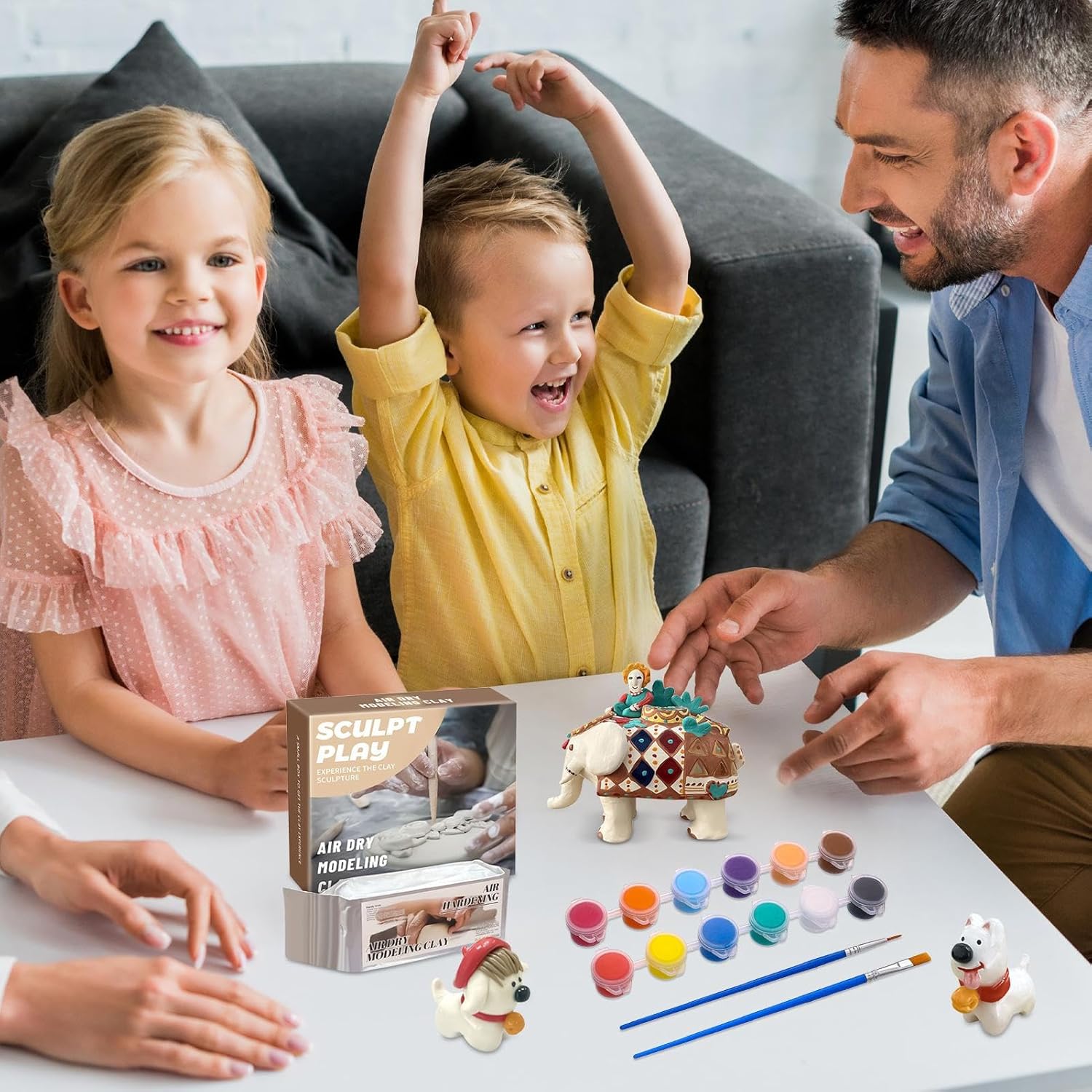 Attrezzatura di base per il bricolage: dotato di 12 colori acrilici, pennelli a doppia faccia, vernice sigillante, flacone spray e strumenti multifunzionali, questo set supporta i bambini con creazioni dettagliate e risultati brillanti con un'applicazione a misura di bambino. Varietà di design dei colori: design unici grazie ai colori automiscelati con pennelli appuntiti e piatti, tecniche di texture migliorate per lavori artigianali eccezionali con una maneggevolezza a misura di bambino. Opere d'arte di lunga durata: la formula speciale di questa pasta da modellare adatta ai bambini si asciuga all'aria formando una superficie robusta. Resiste efficacemente a crepe e rotture, in modo che i modelli e le figure finiti dei bambini rimangano intatti e divertenti per un tempo particolarmente lungo. Multifunzionale: incoraggia la creatività con opzioni artigianali 3D e 2D, funge da materiale educativo, migliora le capacità motorie e consente l'artigianato durante le vacanze e le attività familiari. Stampo per spugna incluso: l'impasto che asciuga all'aria con stampo per spugna e forme semplici consente lavoretti rapidi senza cottura, incoraggia il gioco fantasioso grazie alla facile manipolazione