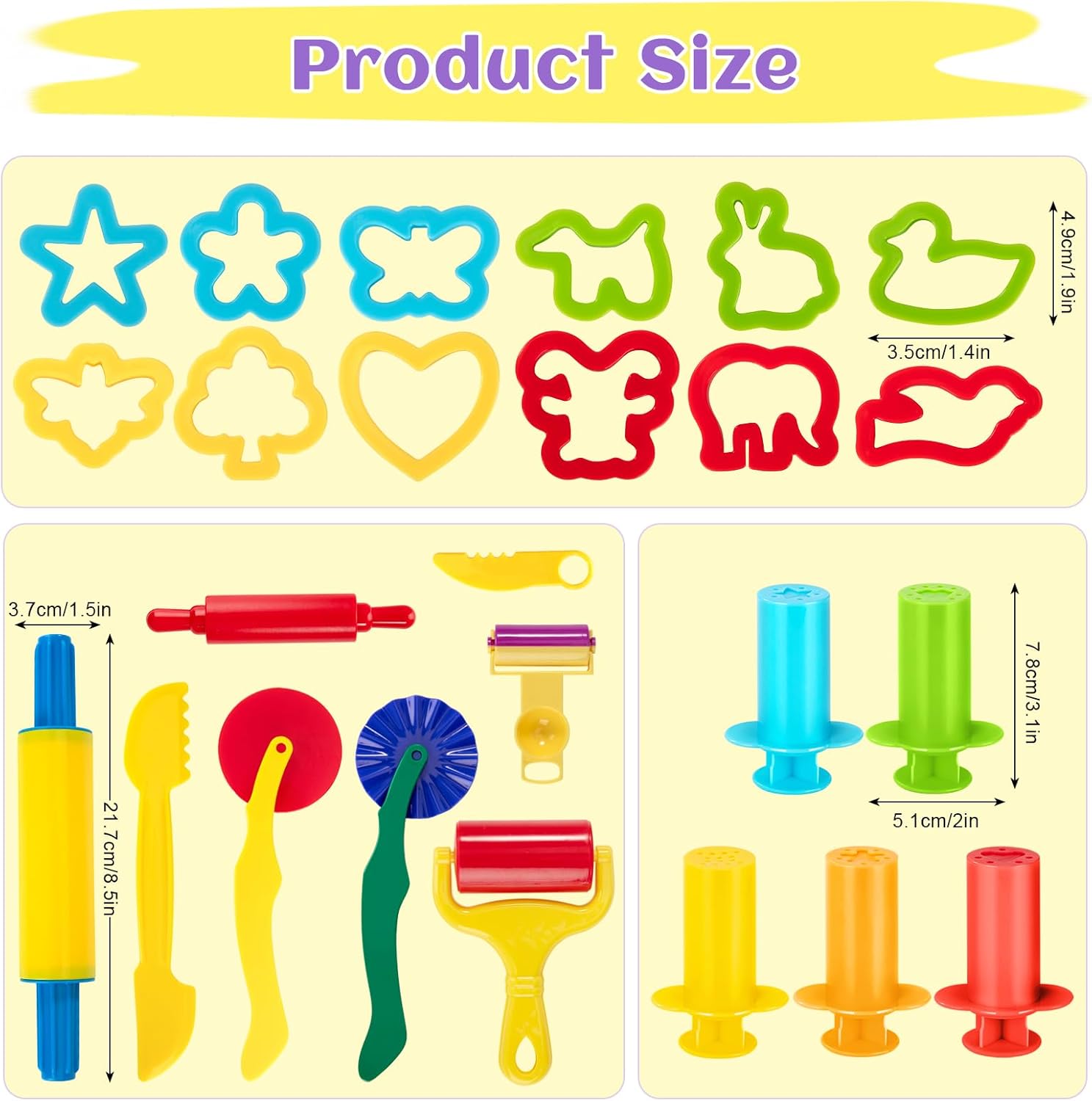 Set di strumenti per impastare: 25 strumenti, tra cui 5* impastatrici, 12* stampi a forma di animali e piante, 4* rulli per mattarello e 4* taglierine di varie forme per soddisfare diverse esigenze creative. Il miglior aiutante dei bambini Varie forme di strumenti per la pasta da gioco per i bambini per tagliare, modellare, pressare, versare o rotolare, e forme cave di animali, alberi di Natale, stelle e altro (colori casuali). Alta qualità: Lo strumento per impastare è realizzato in plastica dura ABS, dai colori vivaci, robusta e durevole, le parti leggere sono progettate per i bambini e adatte alle piccole mani. Giocattoli educativi: Una vasta gamma di accessori e modelli per stimolare l'immaginazione e la creatività dei bambini, stampi con diverse texture per creare facilmente opere d'arte realistiche. Grande regalo: Perfetto come giocattolo per lo sviluppo precoce, regalo per bambini e bambine dai 3 agli 8 anni a Natale, compleanni, vacanze, Capodanno, feste.
