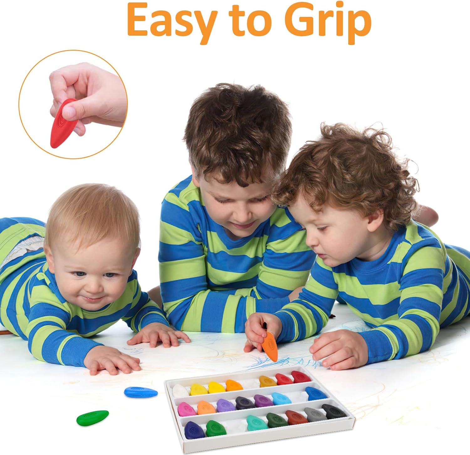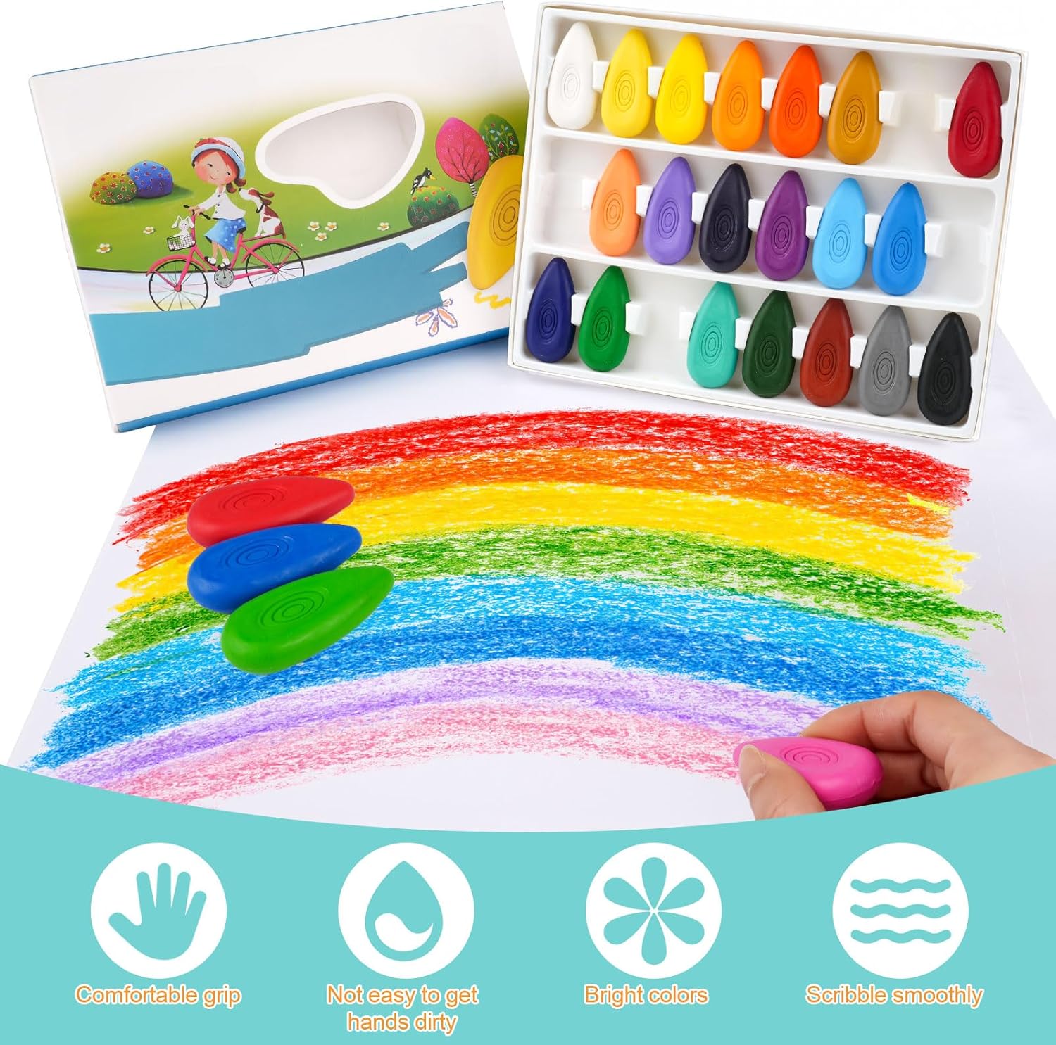Pastelli per bambini: i nostri pastelli a cera sono realizzati in cera naturale ecologica, non tossici e particolarmente adatti per i bambini piccoli. I genitori possono essere certi che i bambini possono essere felicemente creativi. Design impermeabile e antiaderente: i pastelli a cera per bambini sono impermeabili e non si attaccano alle mani. Ciò significa che le tue piccole mani non si sporcano durante il processo di graffiti e l'area circostante rimane pulita e ordinata. Le macchie di graffiti sui vestiti possono essere facilmente rimosse con sapone. Forma a goccia e facile da impugnare: la forma a goccia è appositamente progettata per le mani dei bambini piccoli. Non solo ha un aspetto nuovo e interessante, ma è anche più facile da tenere per i bambini, il che migliora l'esperienza di pittura e allena la capacità di tenere la mano. Allo stesso tempo, non è facile mangiarlo accidentalmente ed è sicuro. I colori ricchi stimolano la creatività: il set di penne da pittura contiene 24 colori vivaci e vivaci con una colorazione evidente per soddisfare le diverse esigenze creative dei bambini e promuovere la loro immaginazione ed estetica attraverso l'abbinamento dei colori. Ottimo regalo per i bambini: i pastelli a cera per bambini sono molto adatti per bambini di età pari o superiore a 1 anno. Usali per promuovere l'interesse dei bambini per la pittura. Regala penne colorate per bambini come regali in classe, compleanni o bomboniere che i bambini adoreranno!
