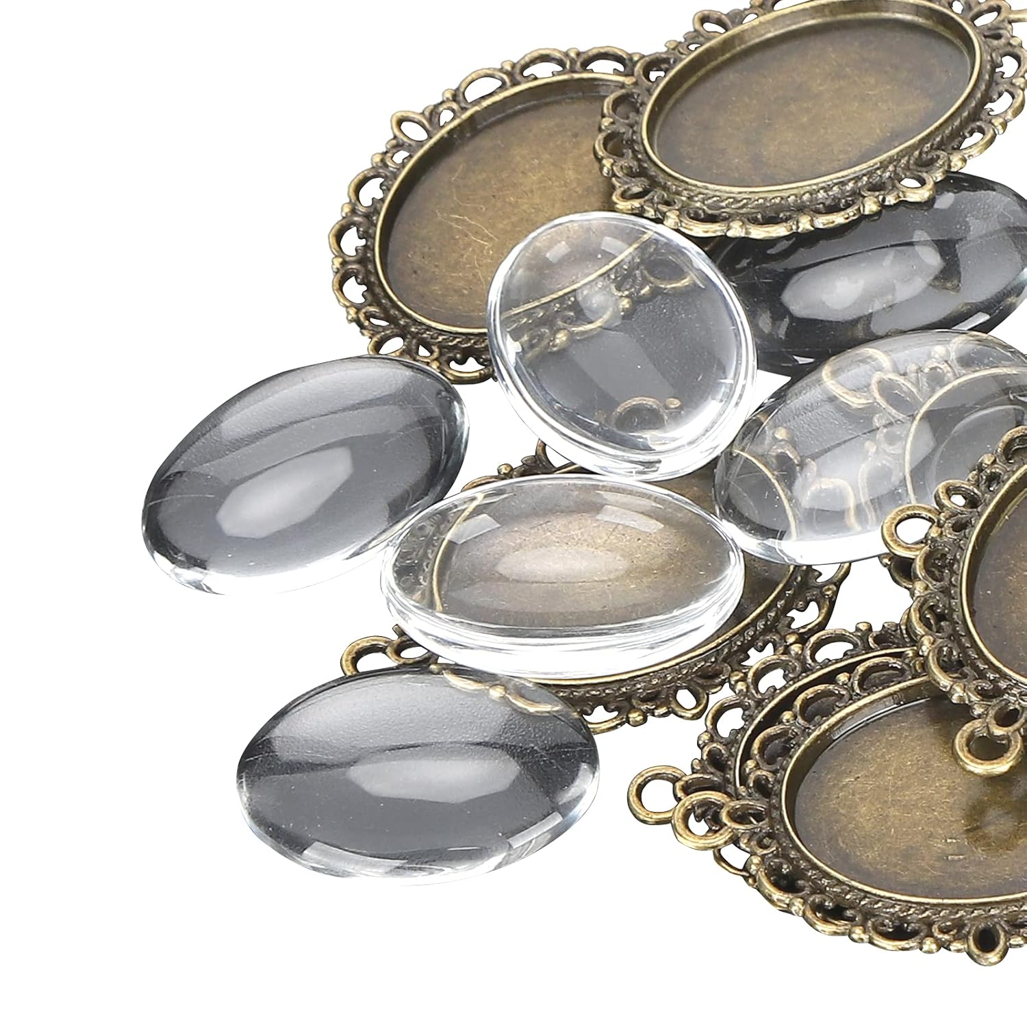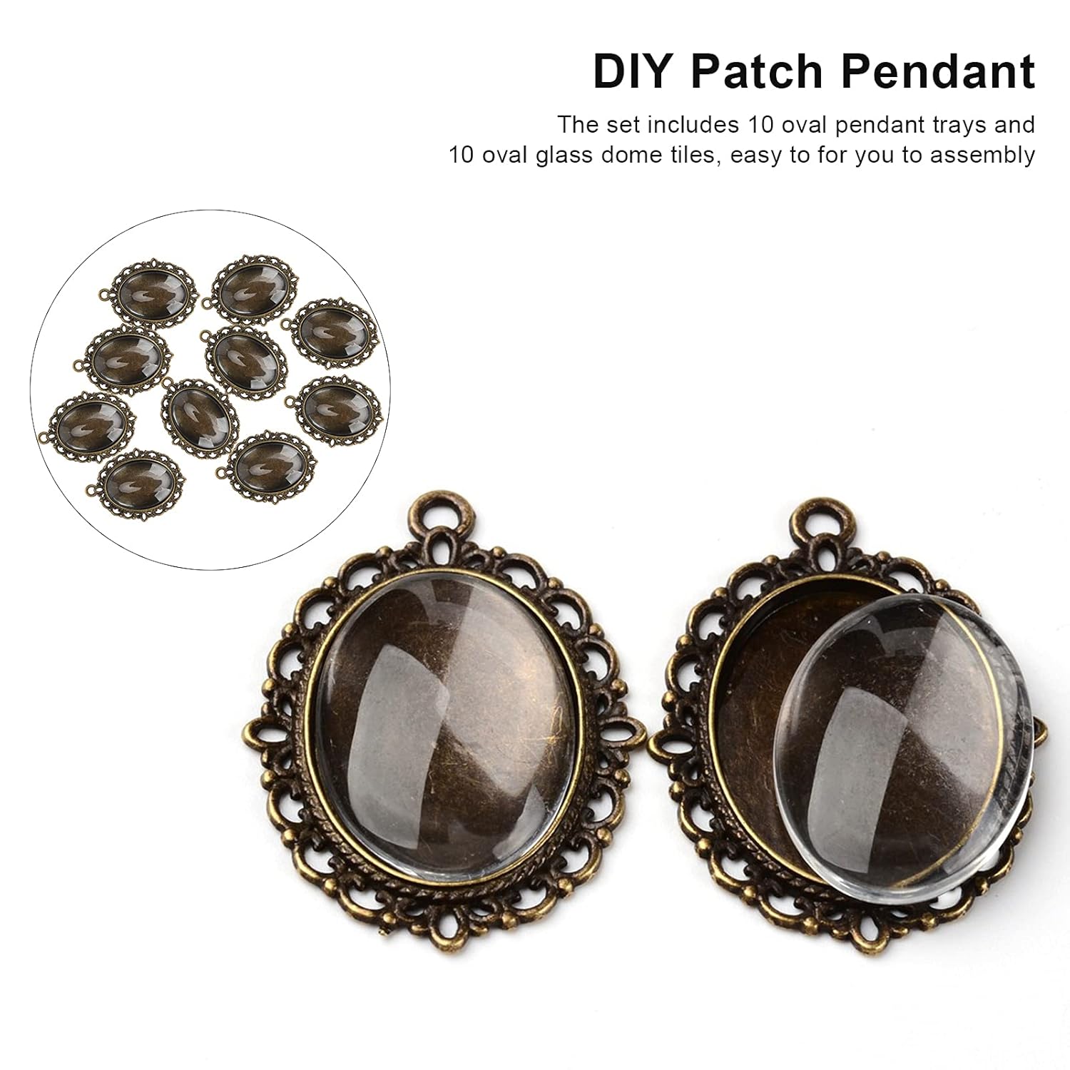 [Facile da usare il telaio del vassoio ovale] La dimensione del telaio del vassoio ovale è di 38x28 mm con un diametro del foro da 3 mm, rendendo facile da appendere. [Materiali durevoli] realizzati in lega di metallo solido, la cornice a sospensione è dura e resistente, assicurando che non si piegasse. [Le piastrelle di vetro ovale abbinate] La dimensione della cupola di vetro ovale è 24x17 mm, realizzata in vetro duro e trasparente, perfettamente abbinato al ciondolo. [Conveniente set] Set include 10 vassoi a sospensione ovale e 10 piastrelle a cupola di vetro ovale, facile per il montaggio. [Ampie applicazioni] possono essere utilizzate per varie arte, mestieri, creazioni di resina, pendenti in rilievo, gioielli fotografici e pezzi personalizzati, offrendo una vasta gamma di usi.