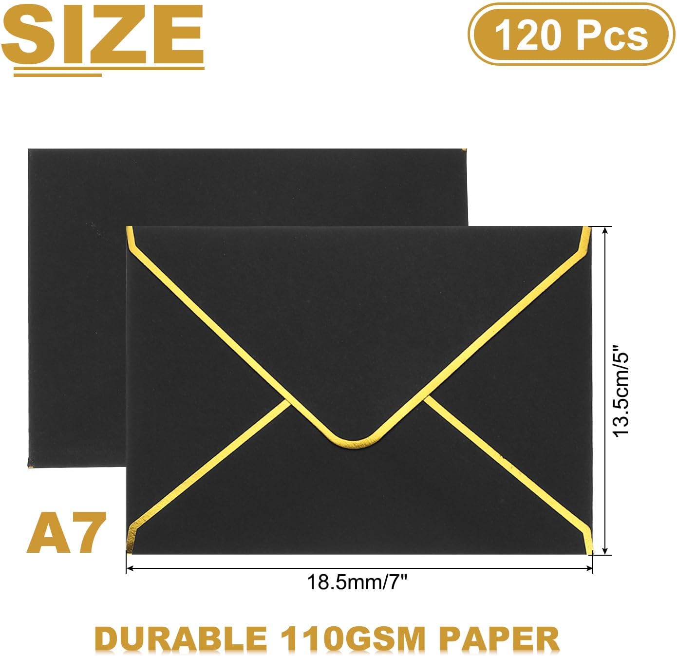 Materiale Carta Resistente 110gsm: Le nostre buste 5x7 hanno una superficie liscia e colori vivaci per attirare l'attenzione e aggiungere eleganza, sono anche più spesse, robuste e durevoli. Riceverai 120 buste per diversi usi, come inviti o spedizioni. BORDO DORATO DI LUSSO - Il bordo in foglia d'oro delle nostre buste è davvero eccezionale. Il Design ad Aletta A V aggiunge un tocco di fascino e raffinatezza ad ogni occasione, facendo risaltare i tuoi inviti. Che tu stia inviando inviti di nozze o corrispondenza commerciale, queste buste lasceranno un'impressione duratura. Chiusura Resistente: Il bordo ha un' aletta gommata. Aggiungi un po' d'acqua al bordo gommato, premi per qualche secondo e le buste saranno perfettamente sigillate per proteggere la tua privacy. Progetti Fai Da Te: Scegli il motivo che preferisci, stampalo sulla busta con una stampante o decorala con fiori secchi, adesivi e francobolli per personalizzare una busta unica e originale. Applicazioni: Aspetto raffinato e ottima qualità, le nostre buste si distinguono. Ampiamente utilizzate per biglietti d'auguri, inviti di nozze, inviti per feste di compleanno, laurea, cartoline, foto, lettere, spedizioni, ecc. Ideali per esprimere gratitudine o inviti a feste come Natale, Ringraziamento e altre celebrazioni.