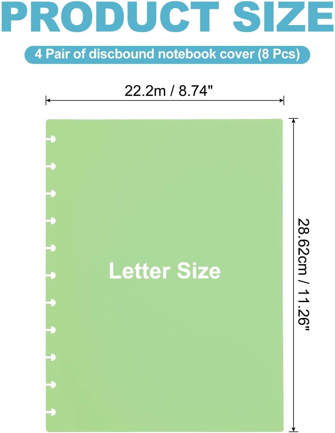 Materiale: PP; Colore: Verde Chiaro; Dimensioni: Lettera 22.2 x 28.6cm / 8.74 x 11.26 pollici; Lista Imballaggio: 4 Coppie di copertine per quaderni discbound (8pz) Vantaggi: Le nostre copertine per quaderni discbound sono realizzate in polipropilene spesso, altamente resistente e duraturo, che può proteggere efficacemente i tuoi appunti da usura e strappi. Ogni copertina ha angoli arrotondati lisci sui bordi non perforati (in alto a destra e in basso) Istruzioni: Adatto per quaderni Arc e Happy Planner, quaderni discbound Applicazione: Queste copertine per quaderni discbound sono principalmente utilizzate per proteggere quaderni e planner discbound. Hanno un aspetto sofisticato e alla moda, che può trasformare i tuoi quaderni in un accessorio di moda accattivante Nota: La confezione contiene solo la copertina, non include i dischi e la carta. Si prega di scegliere la dimensione appropriata al momento dell'acquisto