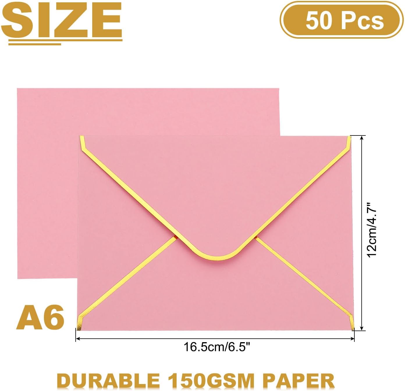 Materiale Carta Resistente 150gsm: Le nostre buste 4x6 hanno una superficie liscia e un colore vivace per attirare l'attenzione e aggiungere eleganza, sono anche più spesse, robuste e resistenti. Riceverai 50 pezzi di buste per diversi usi, come inviti o spedizioni. BORDO ORO LUSSOSO - Il bordo in foglia oro delle nostre buste è davvero qualcosa di cui parlare. Il design a Flap A V aggiunge un tocco di fascino e sofisticatezza a ogni evento, facendo risaltare i tuoi inviti dalla folla. Che tu stia inviando inviti di nozze o corrispondenza aziendale, queste buste lasceranno un'impressione duratura. Sigillatura Forte: Il bordo è progettato con un flap gommato. Aggiungi un po' d'acqua al bordo gommato, premi per alcuni secondi, e le buste saranno perfettamente sigillate per proteggere la tua privacy. Progetti Fai Da Te: Scegli il motivo che preferisci, stampalo sulla busta con una stampante, o decorala con fiori secchi, adesivi e francobolli per personalizzare una busta unica e personalizzata. Applicazione: Aspetto elegante e buona qualità, le nostre buste si distinguono. Ampiamente utilizzate per biglietti di auguri, inviti di nozze, inviti per feste di compleanno, laurea, cartoline, foto, lettere, spedizioni, ecc. Ideali per esprimere i tuoi ringraziamenti o inviti a feste, come Natale, Ringraziamento e altre festività.