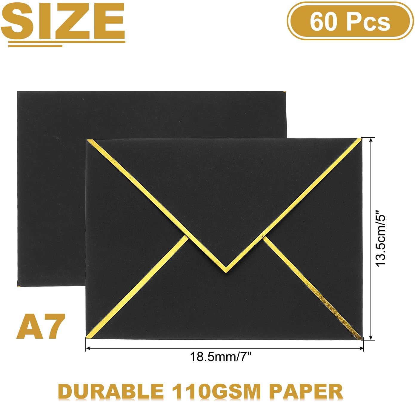 Materiale Carta Resistente 110gsm: Le nostre buste 5x7 hanno una superficie liscia e colori vivaci per attirare l'attenzione e aggiungere eleganza, oltre a essere più spesse, robuste e durevoli. Riceverai 60 pezzi di buste per diversi utilizzi, come inviti o spedizioni. BORDI DORATI DI LUSSO - I bordi in foglia d'oro delle nostre buste sono davvero notevoli. Il design con aletta a V aggiunge un tocco di fascino e raffinatezza a ogni occasione, facendo risaltare i tuoi inviti. Che tu stia inviando inviti per matrimoni o corrispondenza aziendale, queste buste lasceranno un'impressione duratura. Chiusura Resistente: Il bordo ha un design con aletta gommata. Aggiungi un po' d'acqua al bordo gommato, premi per qualche secondo e le buste saranno perfettamente sigillate per proteggere la tua privacy. Progetti Fai Da Te: Scegli il motivo che preferisci, stampalo sulla busta con una stampante o decorala con fiori secchi, adesivi e francobolli per creare una busta unica e personalizzata. Applicazioni: Aspetto elegante e qualità eccellente, le nostre buste si distinguono. Ampiamente utilizzate per biglietti d'auguri, inviti di matrimonio, inviti per feste di compleanno, laurea, cartoline, foto, lettere, spedizioni, ecc. Ideali per esprimere ringraziamenti o inviti a feste, come Natale, Ringraziamento e altre celebrazioni festive.