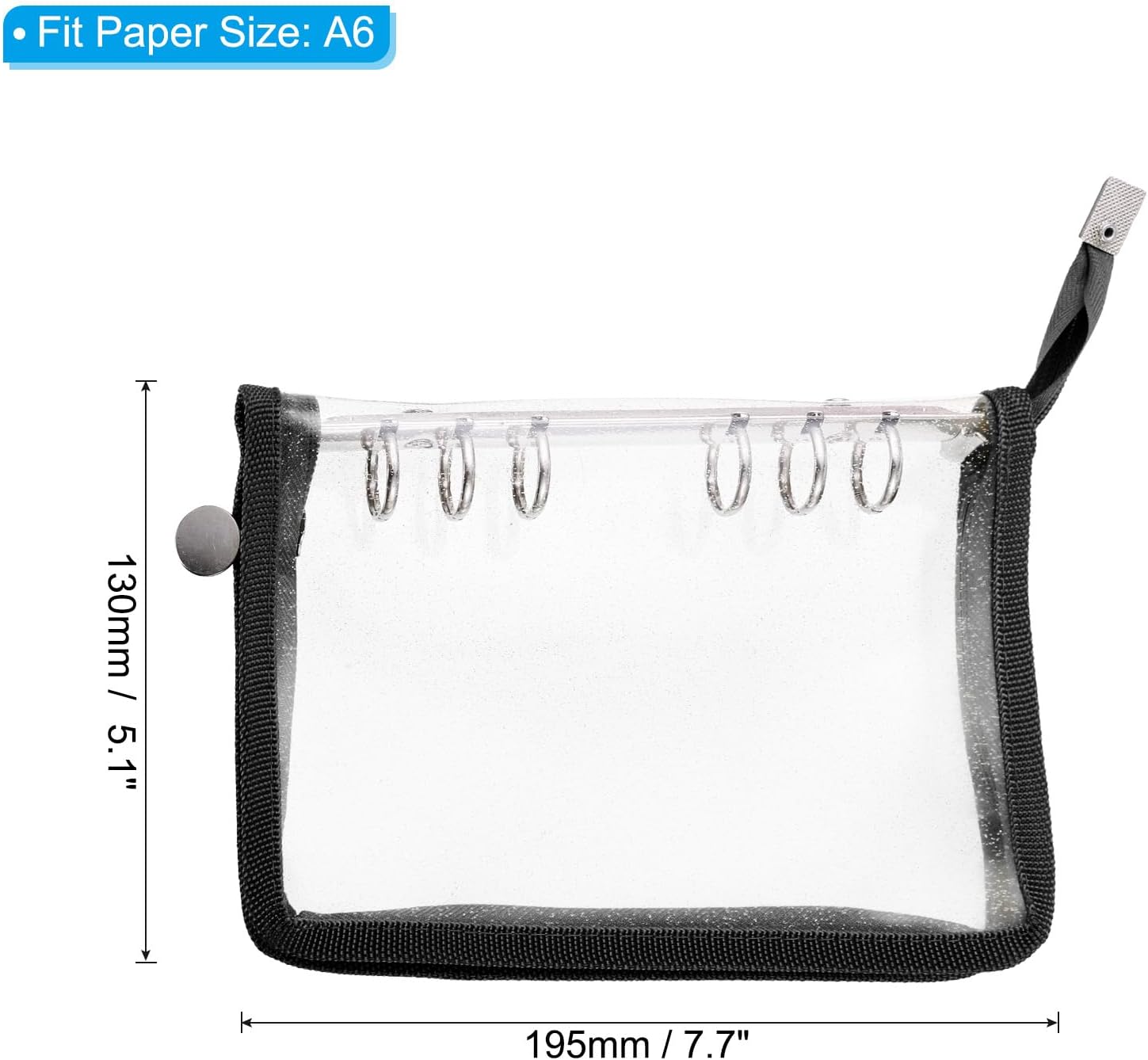 Specifiche: Dimensioni: 195x130 mm; Formato carta: A6; Materiale: PVC morbido e metallo; Colore copertina: rosa; Colore degli anelli: Argento; Lista di imballaggio: 1 x protezione trasparente per notebook A6 Vantaggi: La protezione trasparente per notebook A6 è realizzata in PVC morbido impermeabile e protegge i tuoi file da strappi e polvere; Gli anelli della protezione per notebook sono realizzati in metallo, resistenti alla ruggine, all'usura e non sbiadiscono facilmente, possono essere utilizzati; Permettono di sostituire le pagine interne, girare le pagine e scrivere facilmente sul retro delle pagine, creando un comodo ambiente di scrittura; La cerniera garantisce sicurezza Applicazione: la protezione trasparente per notebook A6 è ampiamente utilizzata in uffici, case e viaggi come protezione perfetta per appunti di studio, diari, verbali di riunioni, file di lavoro, lavori di disegno, album di ricordi, ecc. La copertina trasparente per notebook A6 è anche un ottimo regalo per amici, familiari, ecc. Istruzioni: premere entrambe le estremità per aprire gli anelli. Inserisci le pagine della dimensione appropriata negli anelli della protezione per notebook. Quindi, premere entrambi i lati degli anelli per chiuderli. Nota: la protezione trasparente per notebook include solo la copertina, le pagine interne non sono incluse. Si prega di controllare le dimensioni prima dell'acquisto nel caso in cui la carta non sia adatta.