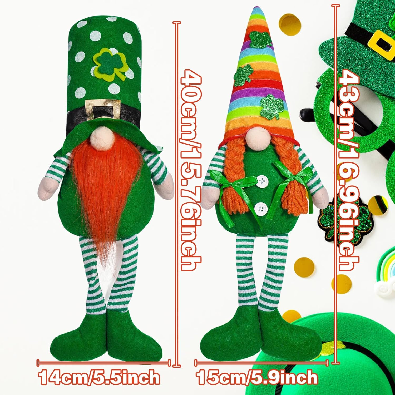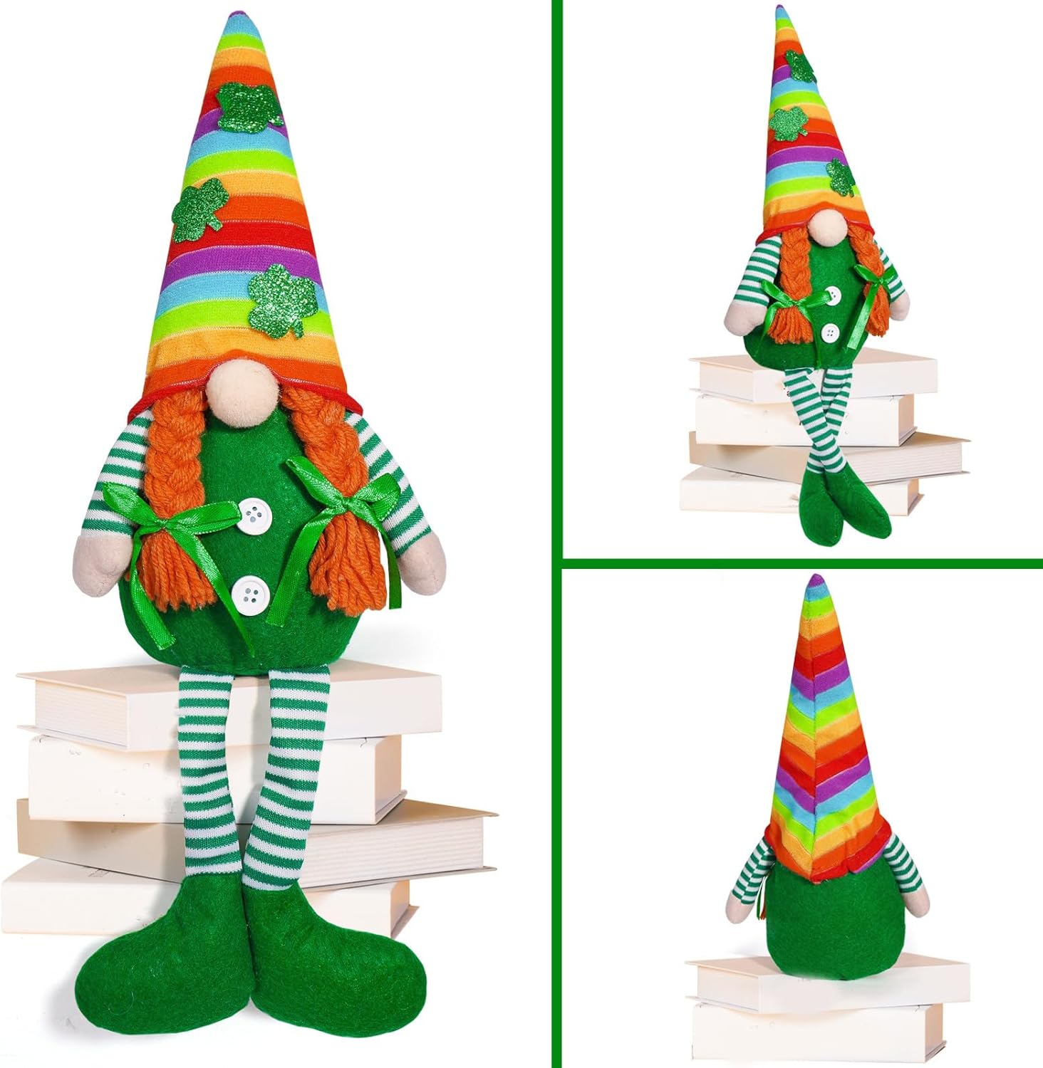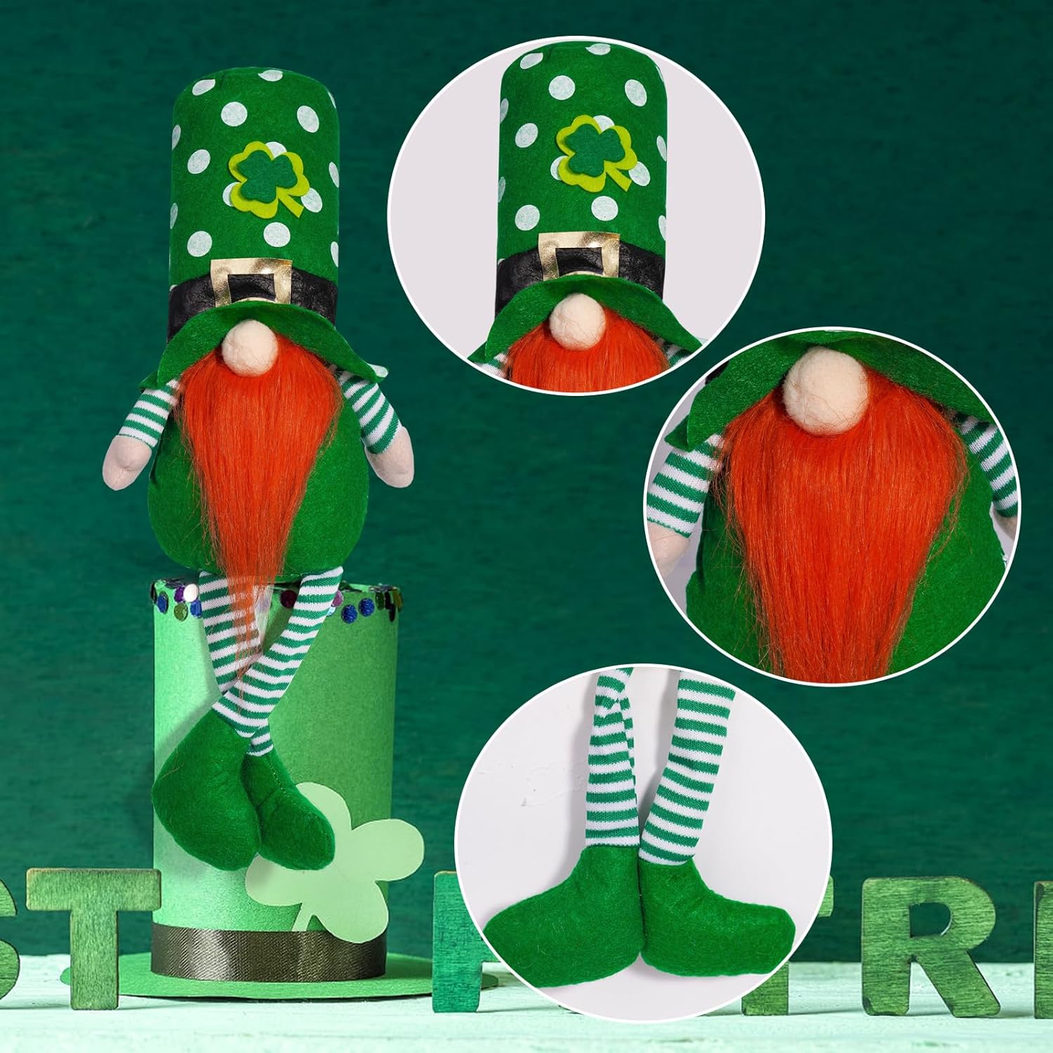 Ideale per gli amanti delle vacanze, in particolare per chi ama decorare piccole feste e collettività Queste bambole decorative per la casa sono una grande aggiunta alla tua collezione di decorazioni per le vacanze e, tra le altre cose, sono un artigianato infestato Realizzato in tessuto di peluche di alta qualità, questa statuetta offre una sensazione morbida e confortevole con colori brillanti che resistono allo sbiadimento e mostra squisiti mestieri Ideale per migliorare le atmosfere festive in case, uffici e scuole o come forniture per feste ed eventi durante la festa di San Patrizio Festeggia il giorno di Patricks con i nostri gnomi verdi, dispone di design unici di cappello arcobaleno che dona un tocco solido e attira l'attenzione