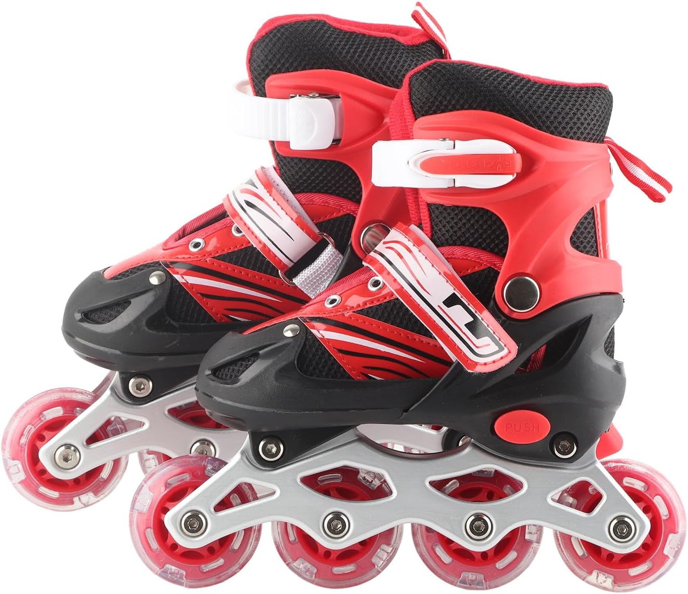 [PVC comodo e durevole] - Realizzati in materiale PVC di alta qualità, questi pattini a rotelle per bambini offrono una vestibilità comoda e un'elevata resistenza all'abrasione, garantendo una vestibilità duratura. [Design delle ruote stabile] - Dotati di ruote eccellenti, questi pattini a rotelle offrono un supporto stabile e un'esperienza di scivolamento fluida, rendendoli perfetti per i principianti. [Design versatile] - Questi pattini a rotelle possono essere utilizzati per il pattinaggio, il pattinaggio all'aperto e altre attività, offrendo ai bambini un'opzione multifunzionale per soddisfare le loro diverse esigenze. [Fodera interna morbida] - Dotati di una morbida fodera interna, questi pattini a rotelle offrono protezione e maggiore comfort per i piedi dei bambini, rendendoli comodi e pratici. [Aspetto elegante] - Con un'estetica accuratamente progettata, questi pattini a rotelle per bambini mettono in risalto i bambini e mostrano la loro individualità e stile, alla moda.