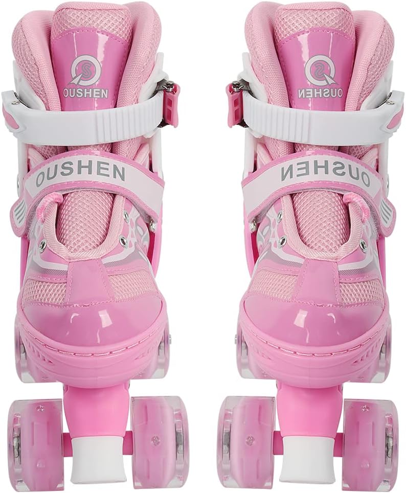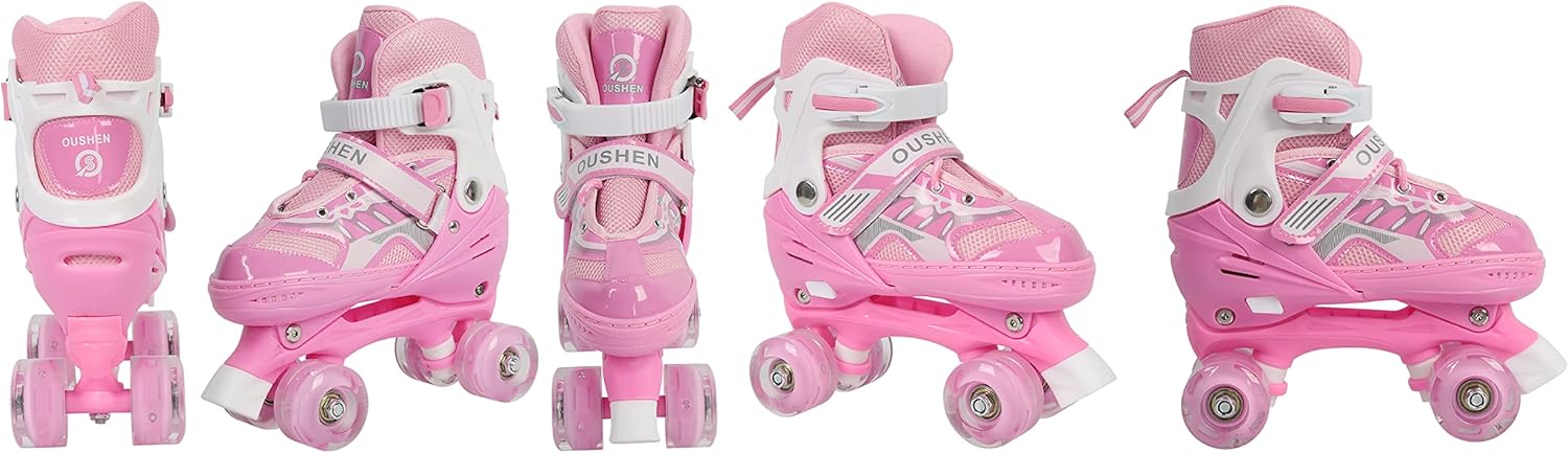 [2 Regolazione della dimensione] - C'è un pulsante sul lato dei pattini a rotelle. Un paio per più taglie con il semplice tocco di un pulsante. Controlla la nostra taglia nei dettagli del prodotto, assicurati di aver selezionato il paio giusto. [SICUREZZA] - I pattini quad regolabili hanno un sistema di tripla protezione con allacciatura, velcro e fibbia ad alta resistenza. Adatto a principianti, bambini, adolescenti [CONFORTEVOLE] - Pattini a rotelle realizzati in materiale composito semimorbido e traspirante con rete sandwich. Le ruote in PVC sono di alta qualità e durevoli. [Staffa robusta] - La staffa in alluminio mantiene più pressione per proteggere i tuoi piedi. [Regali per bambini] - Ogni bambino muore dalla voglia di possedere un paio di fantastici pattini a rotelle e vuole padroneggiare questa abilità sportiva. I nostri pattini a rotelle regolabili mantengono i bambini sani e attivi divertendosi. Estremamente facile da padroneggiare. Questi pattini a rotelle sono una delle opzioni regalo per i bambini durante le celebrazioni.
