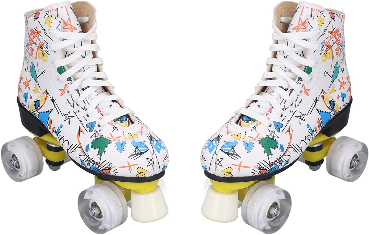 Pattini a rotelle Graffiti, Pattini a rotelle colorati a 4 ruote, Frenata veloce, Traspiranti, per adulti (39) ROLLER_SKATE Materiale robusto e durevole: i pattini a rotelle sono dotati di robusti pattini a quattro ruote realizzati con materiali stampati durevoli, che offrono prestazioni di pattinaggio sicure e affidabili. Quelli lucidi ti rendono più fresco quando pattini. Colonna di supporto anteriore: nella parte anteriore è presente una colonna di supporto, molto adatta ai principianti. Può mantenere meglio il controllo e la frenata rapida. Questa struttura garantisce che la staffa non venga danneggiata. Traspirabilità interna: la traspirabilità interna dei pattini a rotelle a doppia fila può aiutare i tuoi piedi a dissipare rapidamente il calore, prevenire l'odore del piede e prevenire il sudore, permettendoti di goderti appieno lo scivolamento. Comfort e sicurezza: questi pattini a rotelle utilizzano scarpe alte controllabili per garantire una sicurezza ottimale, mentre i lacci premium offrono la massima protezione per garantire comfort e sicurezza del piede.