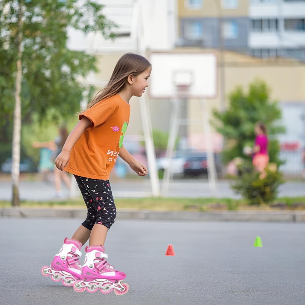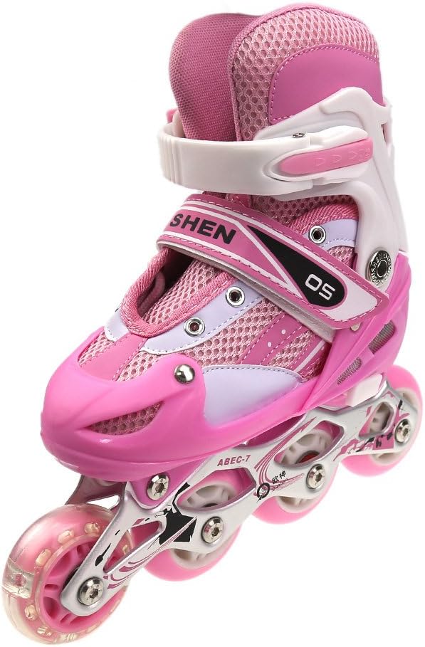 PRIMO PAIO DI SCARPE PER BAMBINI: I bambini iniziano ad interessarsi di più allo sport dopo i 3 anni. Il pattinaggio può migliorare l'equilibrio, la flessibilità, la forza e la resistenza dei bambini Comodo e sicuro: il guscio esterno rigido protegge i piedi dagli urti, la fodera morbida garantisce comfort, mentre i cuscinetti a sfera ABEC7 assicurano una scorrevolezza fluida Pattini a rotelle regolabili: le dimensioni regolabili e le pratiche chiusure con fibbia permettono ai pattini di crescere con i bambini, garantendo un comfort completo e una vestibilità perfetta Fodera separata e lavabile: la fodera può essere separata per la pulizia, comoda per la conservazione e la cura. Pulisci le scarpe dopo che il bambino le usa ogni volta, lascia che il bambino senta che ogni gioco è nuovo. Adatto ai principianti: con il doppio freno posteriore è più facile rallentare o fermarsi, proteggere meglio i bambini. Le ruote lampeggianti rendono anche il pattinaggio più divertente. Non sono necessarie batterie