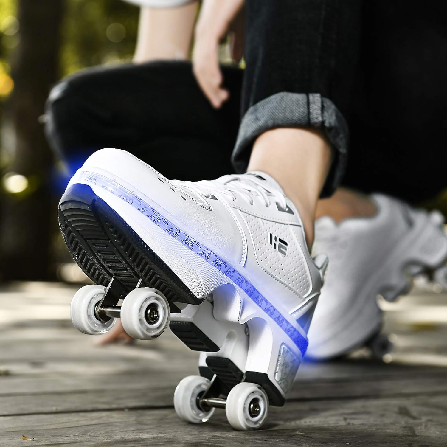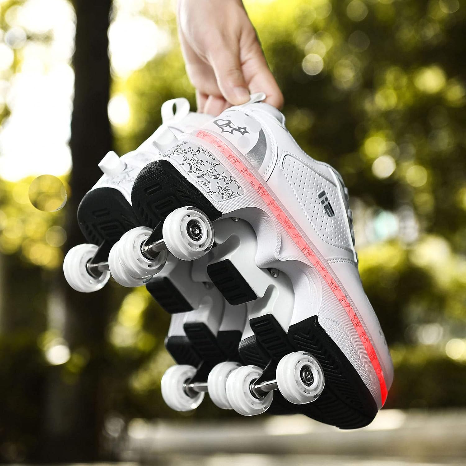 ★ Pattini due in uno: i pattini multiuso regolabili sono diversi dai tradizionali pattini a rotelle sul mercato. Le ruote nascoste possono essere nascoste come normali scarpe da ginnastica, in modo da poter regolare i pattini a rotelle, che possono non solo pattinare ma anche correre. ★ Modalità colorata: puoi goderti vari colori (totale 7 colori, 4 modalità!) Luce a LED, si cammina sulla strada, le scarpe si illuminano. C'è un pulsante sul retro della scarpa, premerlo e la ruota si aprirà. Premere e tenere premuto il pulsante per spingere il rullo nella piastra inferiore e rilasciarlo. Scarpe: i pattini a rotelle regolabili multifunzionali sono realizzati in microfibra, suola in gomma e ruote in poliuretano. Non dobbiamo solo prestare attenzione alla capacità portante della ruota, ma anche prestare attenzione alla selezione del materiale superiore per produrre scarpe a rotelle di alta qualità. Protezione del piede: pattini a rotelle multiuso regolabili con lacci tradizionali. Come per le scarpe da ginnastica, è possibile regolare i lacci per una sensazione più confortevole. Design unico con bottoni invisibili per evitare l'apertura accidentale: c'è un pulsante sul retro della scarpa ★ Regali speciali: i pattini a rotelle regolabili multifunzionali sono adatti per amici di tutte le età e sport unisex. Il rullo è anche uno degli sport più tradizionali per il tempo libero, e puoi giocare con i tuoi amici o bambini nei fine settimana o regalarli come regalo di Natale