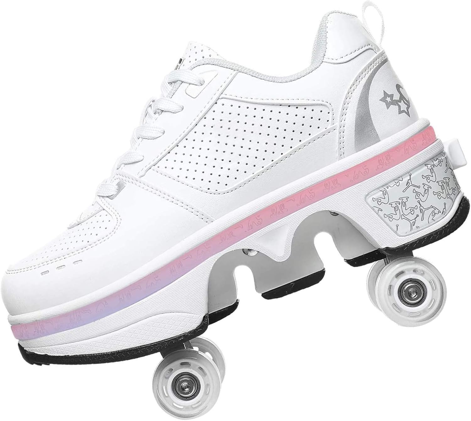 ADATTO AI PRINCIPIANTI - Con queste ruote quad di alta qualità, i pattinatori armati possono tranquillamente muovere i primi passi sul ghiaccio. Progettato per i principianti, migliora la stabilità e l'equilibrio, offre una sensazione confortevole e sicura e riduce il rischio di cadute o lesioni. Design robusto del pattino: rotola facilmente e in sicurezza con le nostre ruote quad, realizzate in materiale PVC ad alta resistenza per un uso duraturo. Le ruote resistenti forniscono una trazione salda su qualsiasi superficie, garantendo sempre prestazioni affidabili. Pattinaggio facile e veloce: scivola con facilità sulle nostre ruote quad che si indossano direttamente sulle scarpe. Passa facilmente dalla camminata allo skate senza dover cambiare le scarpe. Questi si distinguono dagli altri e offrono un'esperienza di pattinaggio fluida e veloce. VESTIBILITÀ REGOLABILE: le ruote quad sono progettate per adattarsi a diverse dimensioni del piede garantendo una vestibilità comoda e crescendo con i tuoi bambini. Sviluppati per i giovani, promettono divertimento di guida e divertimento duraturo su ruote. Divertimento versatile: che si tratti di scivolare sul marciapiede, di fare una crociera nel parco o di rotolare sulle piste, i bambini possono provare diverse attività e trovare la loro passione per il pattinaggio. Sono perfetti per tutti i tipi di avventure di pattinaggio.
