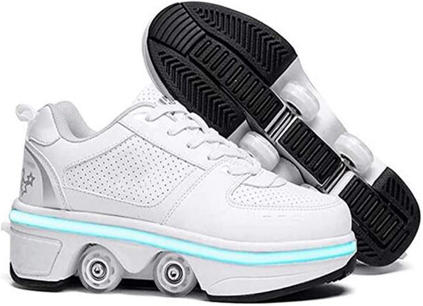 ★ Pattini Due In Uno: I Pattini Multiuso Regolabili Sono Diversi Dai Pattini A Rotelle Tradizionali Sul Mercato. Le Ruote Nascoste Possono Essere Nascoste Come Normali Scarpe Da Ginnastica, Quindi Puoi Regolare I Pattini A Rotelle, Che Non Solo Possono Pattinare Ma Anche Correre. ★ Modalità Colorata: Puoi Goderti Vari Colori (totale 7 Colori, 4 Modalità!) Luce LED, Cammini Sulla Strada, Le Scarpe Si Illuminano. C'è Un Pulsante Sul Retro Della Scarpa, Premilo E La Ruota Si Aprirà. Premi E Tieni Premuto Il Pulsante Per Spingere Il Rullo Nella Piastra Inferiore E Rilasciarlo. ★ Scarpe: I Pattini A Rotelle Regolabili Multifunzionali Sono Realizzati In Microfibra, Suola In Gomma E Ruota In PU. Non Dobbiamo Solo Prestare Attenzione Alla Capacità Portante Della Ruota, Ma Anche Prestare Attenzione Alla Selezione Del Materiale Della Tomaia Per Produrre Rulli Di Alta Qualità Scarpe. ★ Protezione Del Piede: Pattini A Rotelle Multiuso Regolabili Con Lacci Tradizionali.Come Con Le Scarpe Da Ginnastica, Puoi Regolare I Lacci Per La Sensazione Più Confortevole.Pulsante Invisibile Dal Design Unico Per Prevenire L'apertura Accidentale: C'è Un Bottone Sul Retro Della Scarpa ★ Regali Speciali: I Pattini A Rotelle Regolabili Multifunzionali Sono Adatti Per Amici Di Tutte Le Età E Sport Unisex.Il Rullo è Anche Uno Degli Sport Per Il Tempo Libero Più Tradizionali E Puoi Giocare Con I Tuoi Amici O Bambini Nei Fine Settimana O Regalarli Come Un Natale Regalo