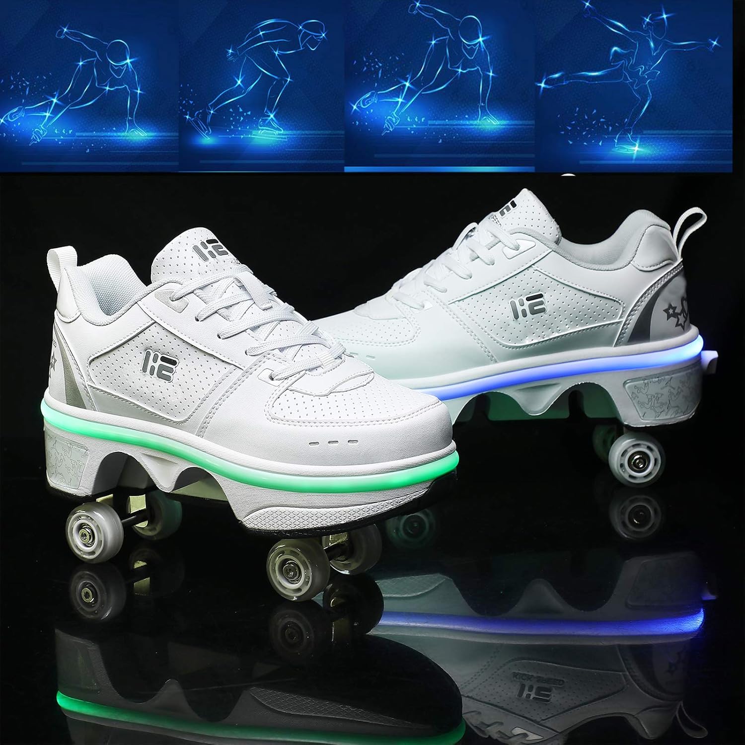 ★ Pattini Due In Uno: I Pattini Multiuso Regolabili Sono Diversi Dai Pattini A Rotelle Tradizionali Sul Mercato. Le Ruote Nascoste Possono Essere Nascoste Come Normali Scarpe Da Ginnastica, Quindi Puoi Regolare I Pattini A Rotelle, Che Non Solo Possono Pattinare Ma Anche Correre. ★ Modalità Colorata: Puoi Goderti Vari Colori (totale 7 Colori, 4 Modalità!) Luce LED, Cammini Sulla Strada, Le Scarpe Si Illuminano. C'è Un Pulsante Sul Retro Della Scarpa, Premilo E La Ruota Si Aprirà. Premi E Tieni Premuto Il Pulsante Per Spingere Il Rullo Nella Piastra Inferiore E Rilasciarlo. ★ Materiali Di Alta Qualità: I Pattini A Rotelle Regolabili Multifunzionali Sono Realizzati In Microfibra, Suola In Gomma E Ruota In PU. Non Dobbiamo Solo Prestare Attenzione Alla Capacità Portante Della Ruota, Ma Anche Prestare Attenzione Alla Selezione Del Materiale Della Tomaia Da Produrre Pattini A Rotelle Di Alta Qualità. ★ Protezione Del Piede: Pattini A Rotelle Multiuso Regolabili Con Lacci Tradizionali.Come Con Le Scarpe Da Ginnastica, Puoi Regolare I Lacci Per Una Sensazione Più Confortevole.Pulsante Invisibile Dal Design Unico Per Evitare L'apertura Accidentale: C'è Un Bottone Sul Retro Della Scarpa ★ Regali Speciali: I Pattini Sono Il Regalo Perfetto Per Compleanni, Spettacoli, Halloween, Ringraziamento, Natale E Altre Celebrazioni.