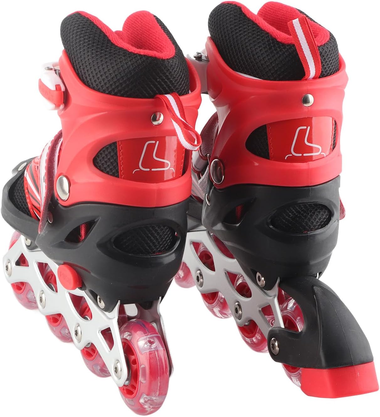 [Passa liberamente tra linee singole e doppie] Questi pattini a rotelle consentono stili di pattinaggio versatili per principianti e pattinatori avanzati. [Luci luminose nei colori delle ruote] cade al buio con luci luminose auto-generate che non hanno bisogno di batterie per garantire ogni volta uno skate sicuro e divertente. [Design comodo e resistente] Imbottitura morbida e telaio robusto offrono comfort e stabilità superiori per un uso prolungato, mantenendo i piedi comodi e sicuri. [Favorisce l'esercizio fisico e il divertimento] Goditi le attività sportive e aumenta la salute delle ossa, delle articolazioni e dei muscoli con queste slitte 2 in 1, rendendole un regalo di Natale per. Facilmente regolabile e stabile: con 4 intervalli di regolazione della taglia e freni posteriori, questi pattini offrono un equilibrio ottimale e sicurezza per adulti a partire dai 3 anni.