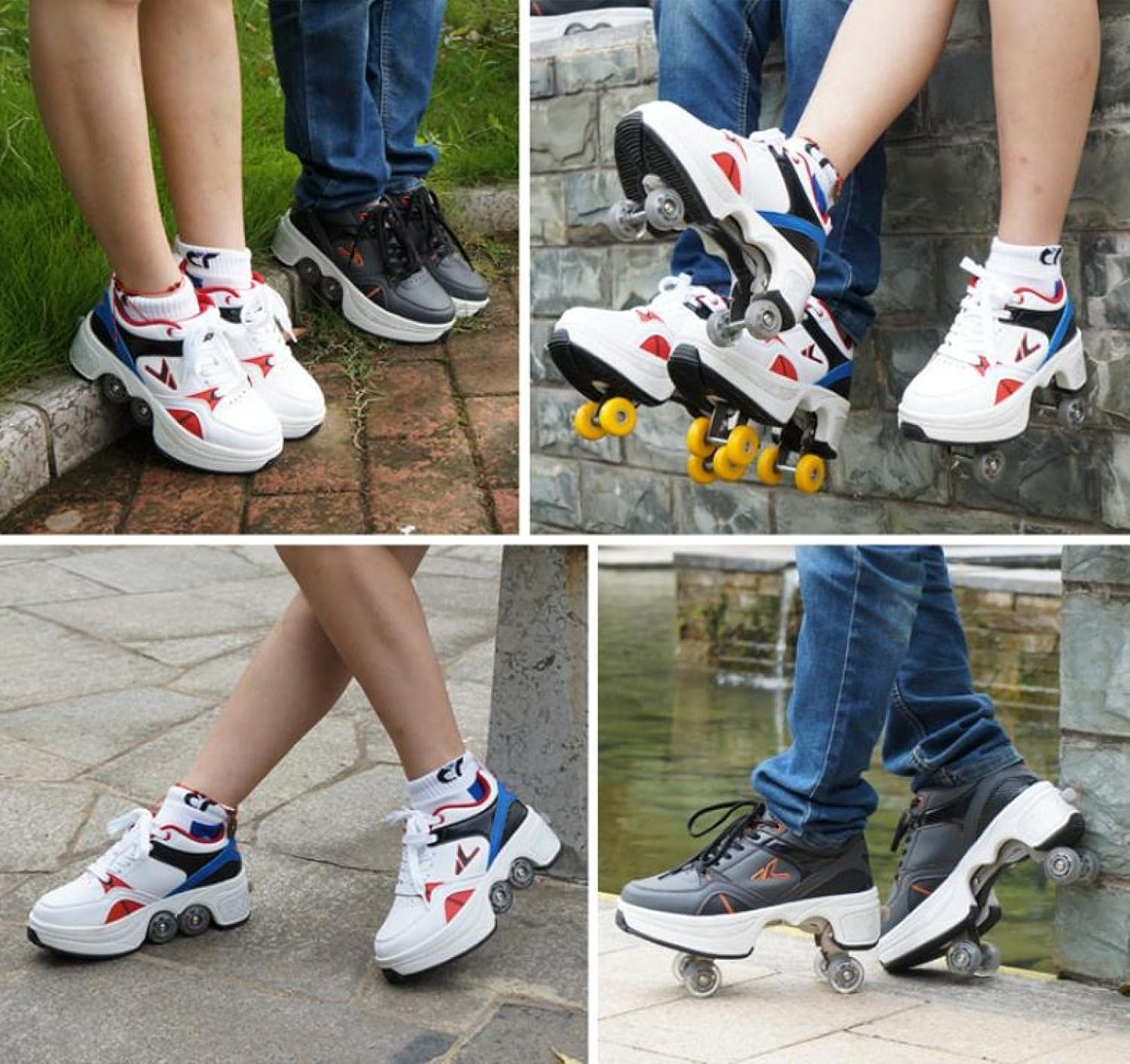 ★ Pattini a rotelle 2 in 1, questa scarpa è diversa dai normali pattini a rotelle sul mercato. Può essere utilizzato non solo per il pattinaggio a rotelle, ma anche per camminare. ★ Materiale: le scarpe da pattinaggio sono realizzate in microfibra, la suola è in gomma e le ruote sono in PU. ★ Protezione del piede: i pattini in linea multifunzionali regolabili utilizzano lacci tradizionali. Come con le scarpe da ginnastica, puoi regolare i lacci per la sensazione più confortevole. Tuttavia, ti consigliamo di allacciare i lacci delle scarpe quando pattini per garantire la tua sicurezza. ★ Design unico con pulsante invisibile: c'è un pulsante sul retro della scarpa. Premilo e la ruota si aprirà. Tenere premuto il pulsante per premere e rilasciare il rullo nella piastra di base. La ruota quindi si spegne per impedirne l'apertura accidentale. ★ Regali innovativi: le versatili scarpe da skate possono essere regalate come regalo di compleanno per bambini e amici e godersi il buon tempo insieme a loro.