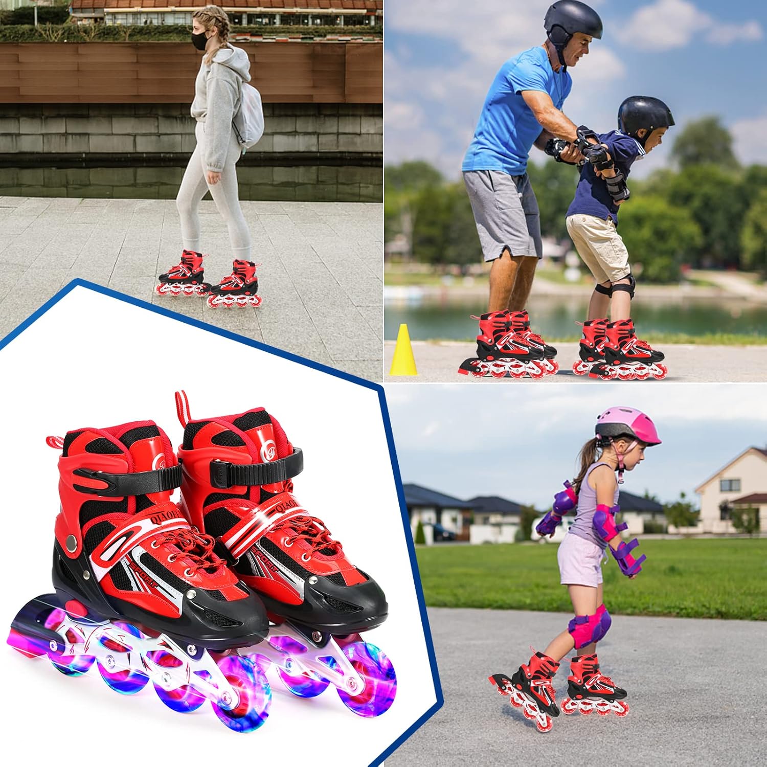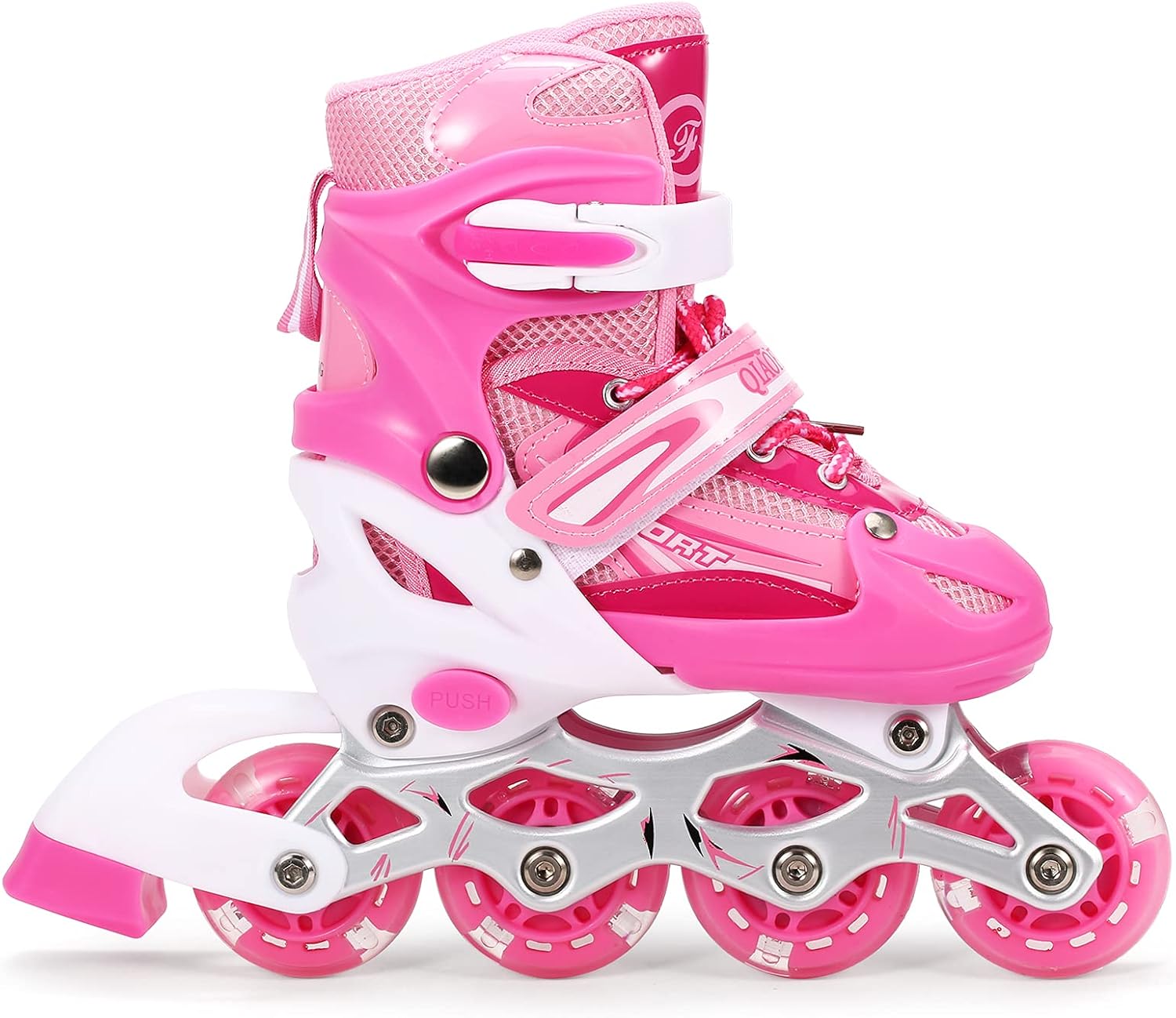 Ruote in poliuretano resistente all'abrasione e cuscinetto ABEC-7 per un rotolamento silenzioso e regolare sul pavimento. Le ruote si accendono automaticamente quando inizi a pattinare, non sono necessarie batterie. Taglia facile da regolare per mantenere questi pattini in uso per più di una stagione. La taglia S si adatta alle taglie di scarpe dalla 27 alla 32; taglia M: dalla 33 alla 37; taglia L: dalla 38 alla 41. Fodera in rete traspirante per mantenere i piedi comodi.