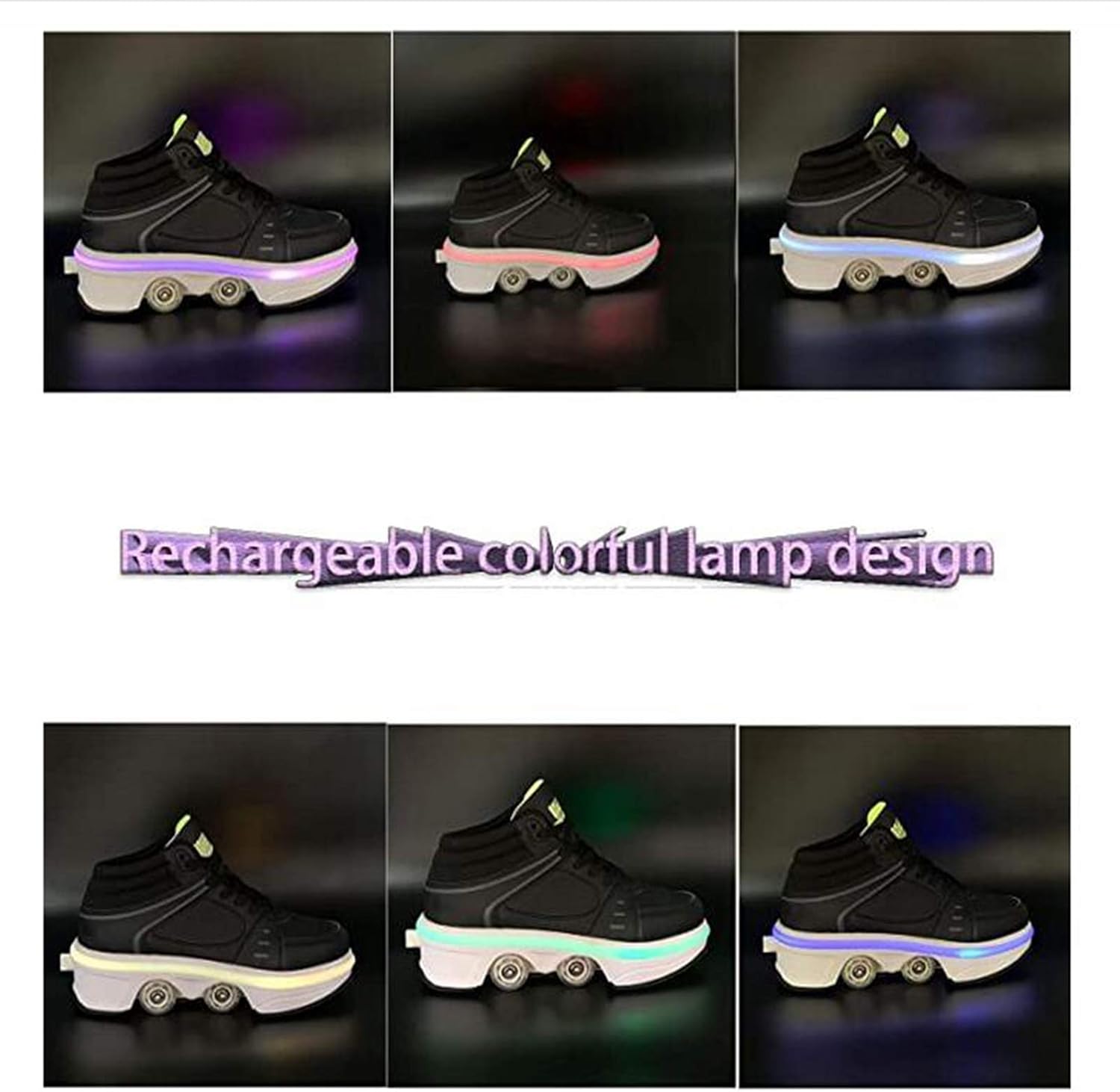 ★ Pattini Due In Uno: I Pattini Multiuso Regolabili Sono Diversi Dai Pattini A Rotelle Tradizionali Sul Mercato. Le Ruote Nascoste Possono Essere Nascoste Come Normali Scarpe Da Ginnastica, Quindi Puoi Regolare I Pattini A Rotelle, Che Non Solo Possono Pattinare Ma Anche Correre. ★ Modalità Colorata: Puoi Goderti Vari Colori (totale 7 Colori, 4 Modalità!) Luce LED, Cammini Sulla Strada, Le Scarpe Si Illuminano. C'è Un Pulsante Sul Retro Della Scarpa, Premilo E La Ruota Si Aprirà. Premi E Tieni Premuto Il Pulsante Per Spingere Il Rullo Nella Piastra Inferiore E Rilasciarlo. ★ Materiali Di Alta Qualità: I Pattini A Rotelle Regolabili Multifunzionali Sono Realizzati In Microfibra, Suola In Gomma E Ruota In PU. Non Dobbiamo Solo Prestare Attenzione Alla Capacità Portante Della Ruota, Ma Anche Prestare Attenzione Alla Selezione Del Materiale Della Tomaia Da Produrre Pattini A Rotelle Di Alta Qualità. ★ Protezione Del Piede: Pattini A Rotelle Multiuso Regolabili Con Lacci Tradizionali.Come Con Le Scarpe Da Ginnastica, Puoi Regolare I Lacci Per La Sensazione Più Confortevole.Pulsante Invisibile Dal Design Unico Per Prevenire L'apertura Accidentale: C'è Un Bottone Sul Retro Della Scarpa ★ Regali Speciali: I Pattini Sono Il Regalo Perfetto Per Compleanni, Spettacoli, Halloween, Ringraziamento, Natale E Altre Celebrazioni.