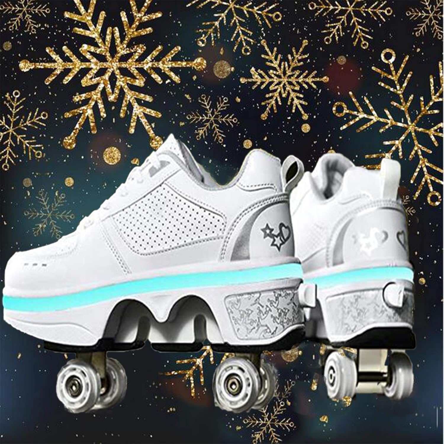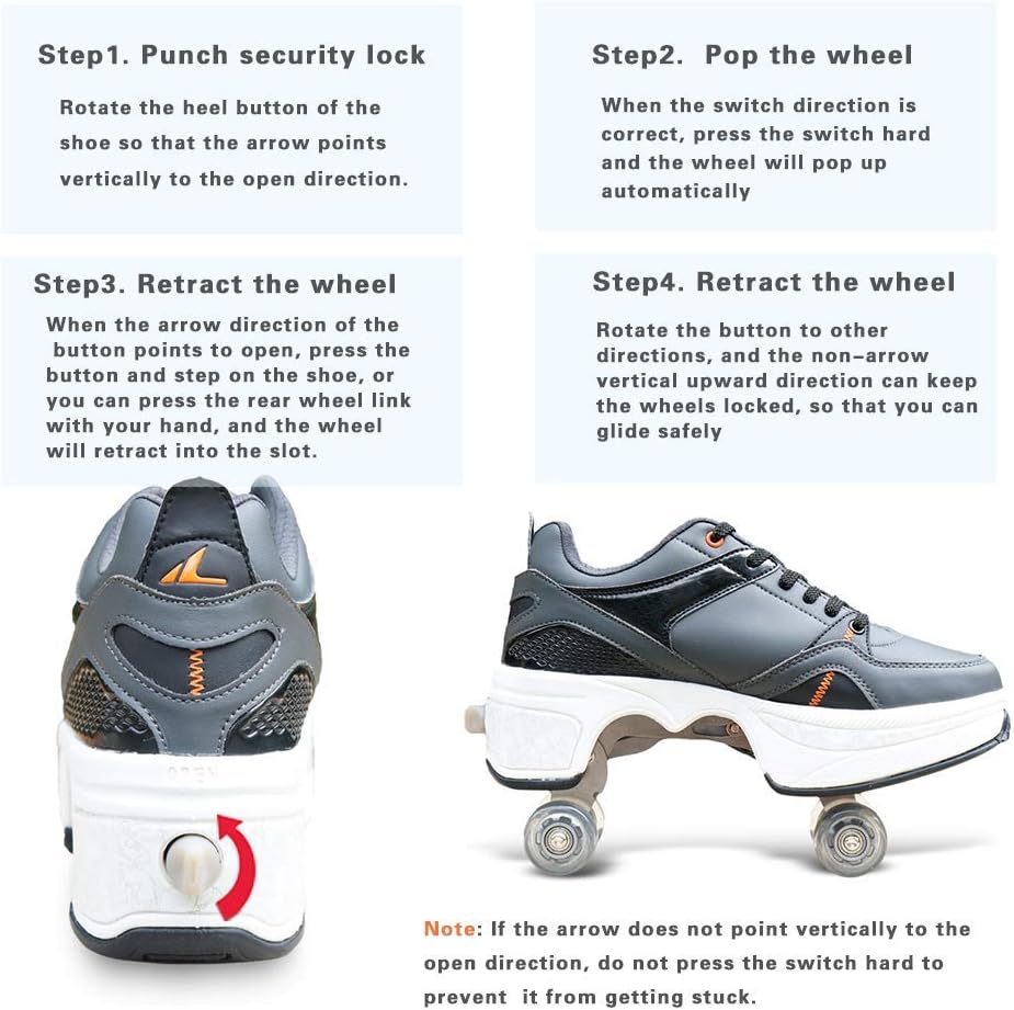 Comfort: il design del materiale Hsinchu interno rende le scarpe più comode da indossare e protegge i tuoi piedi. Tempo libero: apri il pulsante sul retro della scarpa, premi e apri la ruota, oppure premi il pulsante per premere la ruota nel terreno, quindi rilasciala per diventare una scarpa da corsa. Materiale: tessuto traspirante, deodorante, ruote regolabili, impermeabile. Regali creativi: ruote luminose, adatte per pattinaggio, festa, discoteca, danza, compleanno, Natale. Taglia: scegli la taglia appropriata in base alla tabella delle taglie.