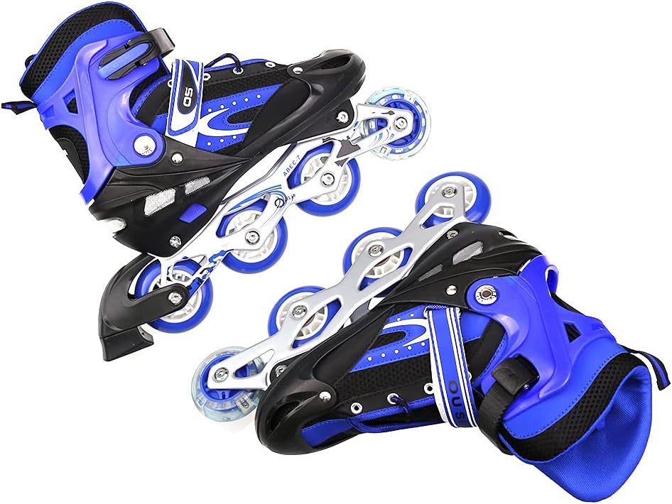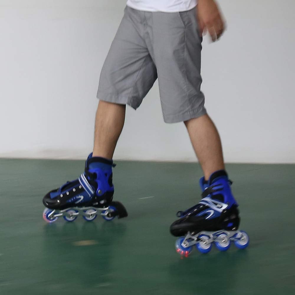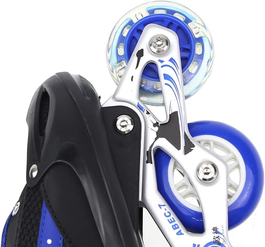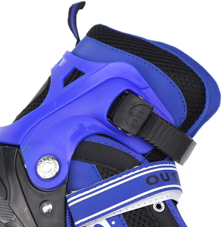 【Pattini a rotelle traspiranti】La tomaia di questo paio di pattini a rotelle per bambini è composta da un materiale semi-morbido e traspirante e una rete sandwich, che può impedire ai piedi del bambino di sudare e mantenerlo traspirante. 【Ruote luminose】8 cuscinetti a ruote allineate permettono al bambino di scivolare liberamente come il vento. Allo stesso tempo, la ruota anteriore brilla, che è più evidente di notte. Ruota singola in PVC, senza elasticità. 【Dimensioni regolabili】C'è un pulsante sul supporto. Tienilo mentre tira o stringi la scarpa per regolare la taglia. Le S/M corrispondono rispettivamente alle taglie 31-34 e 35-38. Questo dipende principalmente dalle dimensioni del bambino e il bambino crescerà molto rapidamente, si prega di controllare la tabella delle taglie prima dell'acquisto. 【Alta Sicurezza】Il supporto in lega di alluminio ad alta resistenza in due parti e il freno sensibile garantiscono la morbidezza e la sicurezza dei pattini in linea. Protezione della caviglia: l'imbottitura interna è super imbottita con una protezione aggiuntiva intorno alla parte superiore della scarpa per pattini che protegge le caviglie dei bambini.