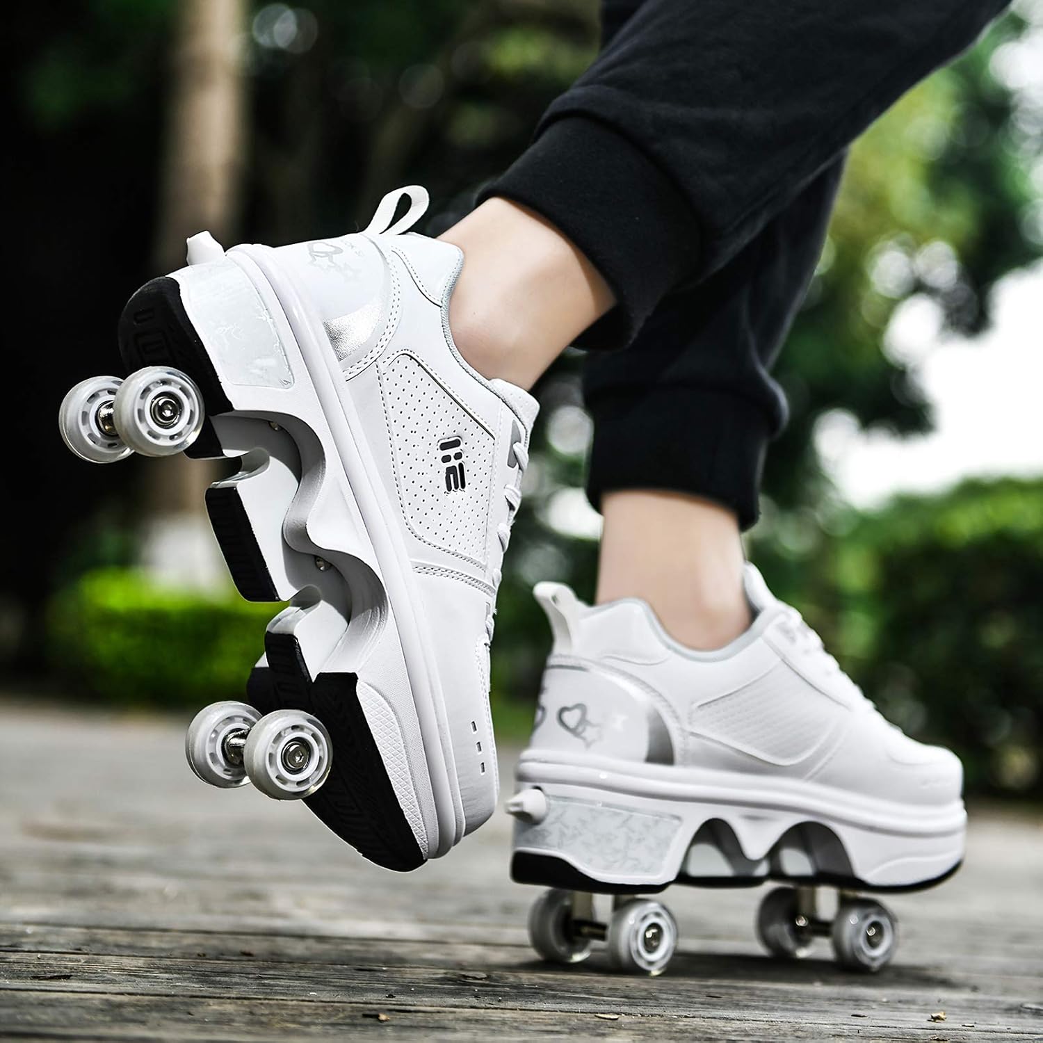 Pattini, Scarpe Multiuso 2 In 1, Stivali Per Pattini A Rotelle Regolabili, Per Principianti,White-EUR36