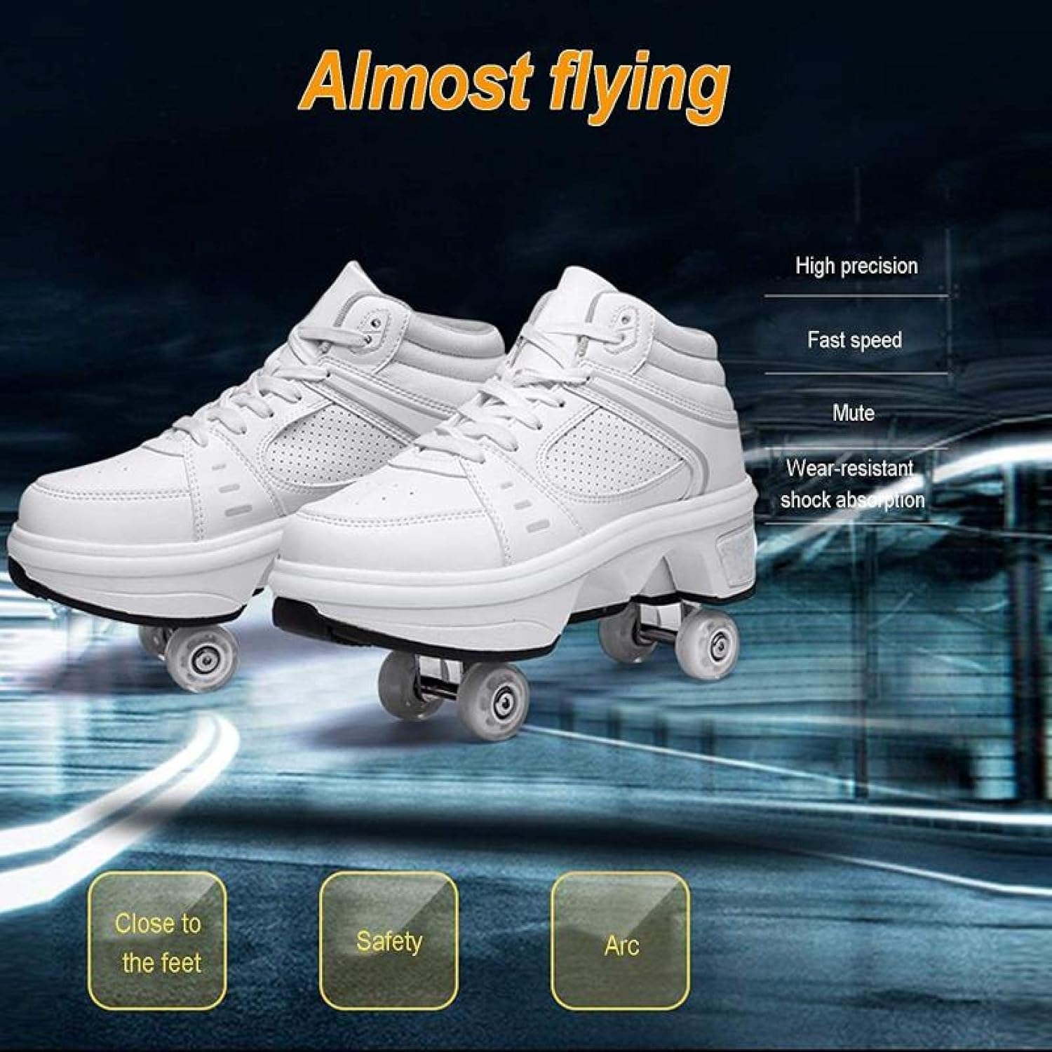 ★ Pattini A Rotelle Due In Uno: I Pattini Multiuso Regolabili Sono Diversi Dai Pattini A Rotelle Tradizionali Sul Mercato. Le Ruote Nascoste Possono Essere Nascoste Come Normali Scarpe Da Ginnastica, Quindi Puoi Regolare I Pattini A Rotelle, Che Non Solo Possono Pattinare Ma Anche Correre. ★ Design Luminoso Unico: I Nostri Pattini A Rotelle Sono Diversi Dalle Altre Scarpe, 7 Luci LED A Colori Disponibili E USB Ricaricabile, La Porta Di Ricarica USB E L'interruttore Sono Nascosti All'interno Della Scarpa. Sembra Bello, Non è Vero? ★ Materiale: Materiale Superiore (microfibra), Suola (gomma), Materiale Della Ruota (PU). Usa I Lacci Delle Scarpe Tradizionali. Puoi Regolare Il Laccio Delle Scarpe Per Scegliere La Sensazione Più Comoda. ★ Prestazioni Antiscivolo: La Ruota Ha Una Buona Presa E Migliora La Capacità Antiscivolo Del Pneumatico Imitando La Funzione A Dente Di Sega Del Rullo. Garantire La Stabilità E La Sicurezza Del Movimento. ★ Regali Speciali: I Pattini A Rotelle Regolabili Multifunzionali Sono Adatti Per Amici Di Tutte Le Età, Sport Unisex. Puoi Giocare Con Amici O Bambini O Regalarli Come Regali Di Natale.