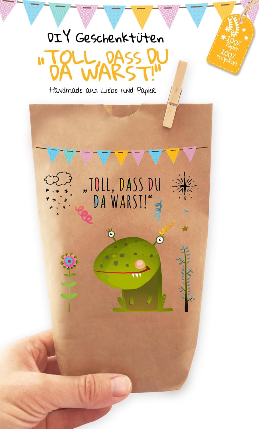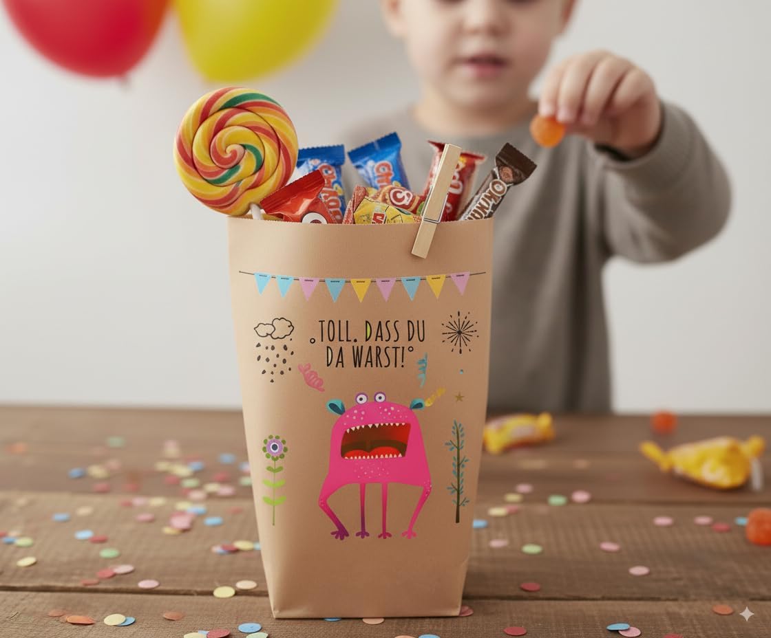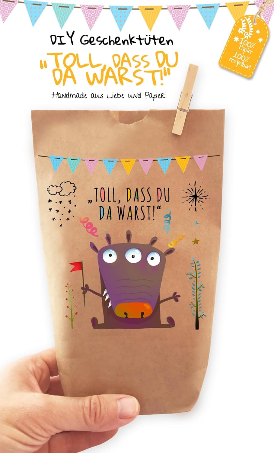 6 bellissimi sacchetti regalo "È fantastico che TU fossi lì!" ORIGINALE Prodotto in Germania, non in Cina! - stampata individualmente con amore, ogni borsa è un pezzo unico, comprese clip di legno, borse in carta kraft marrone naturale, dimensioni 14 x 22 cm - profondità della base ca. Sacchetti di carta Kraft da 5,4 cm per confezionare regali, per lavori manuali o per realizzare calendari dell'Avvento fai da te. Adatto per matrimoni, compleanni e tutte le altre celebrazioni. Paul's Papierfabrik sviluppa e progetta tutti i suoi prodotti in Germania. Realizzato con qualità eccezionale con amore e carta! Per amore, rispetto e preoccupazione per il nostro ambiente, non utilizziamo imballaggi in plastica: cartone o carta riciclabili al 100%! Clicca su PAUL'S PAPER FACTORY qui sopra e troverai molte altre bellissime borse della nostra cartiera.