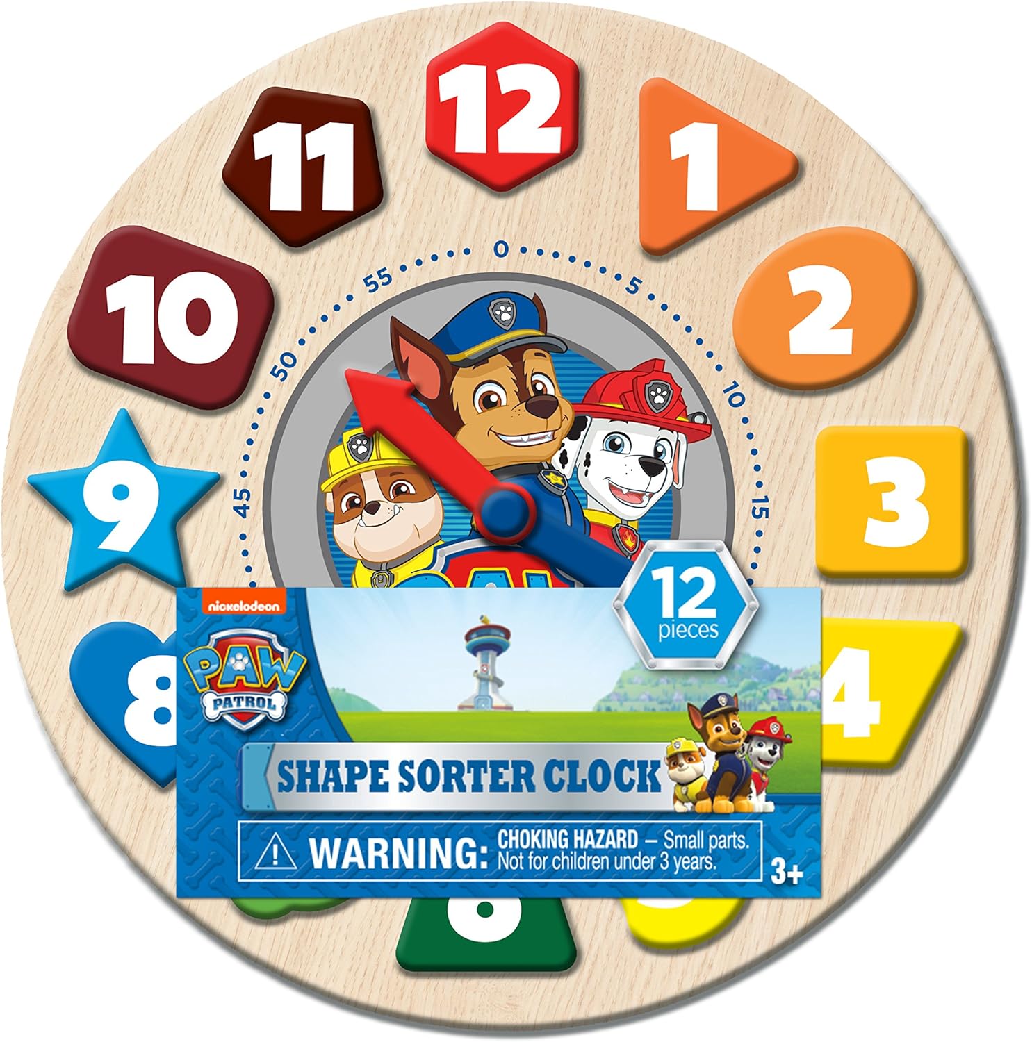 Le forme in legno rimovibili e dai colori vivaci con numeri stampati sotto le forme consentono una maggiore interazione e facilità di abbinamento Con questo orologio di selezione di forme, imparare a dire l'ora è reso divertente e semplice! 12 forme in legno fustellate, quadrante con etichetta per ore e minuti, supporto in legno e colori vivaci e divertenti con bordi lisci 12 pezzi