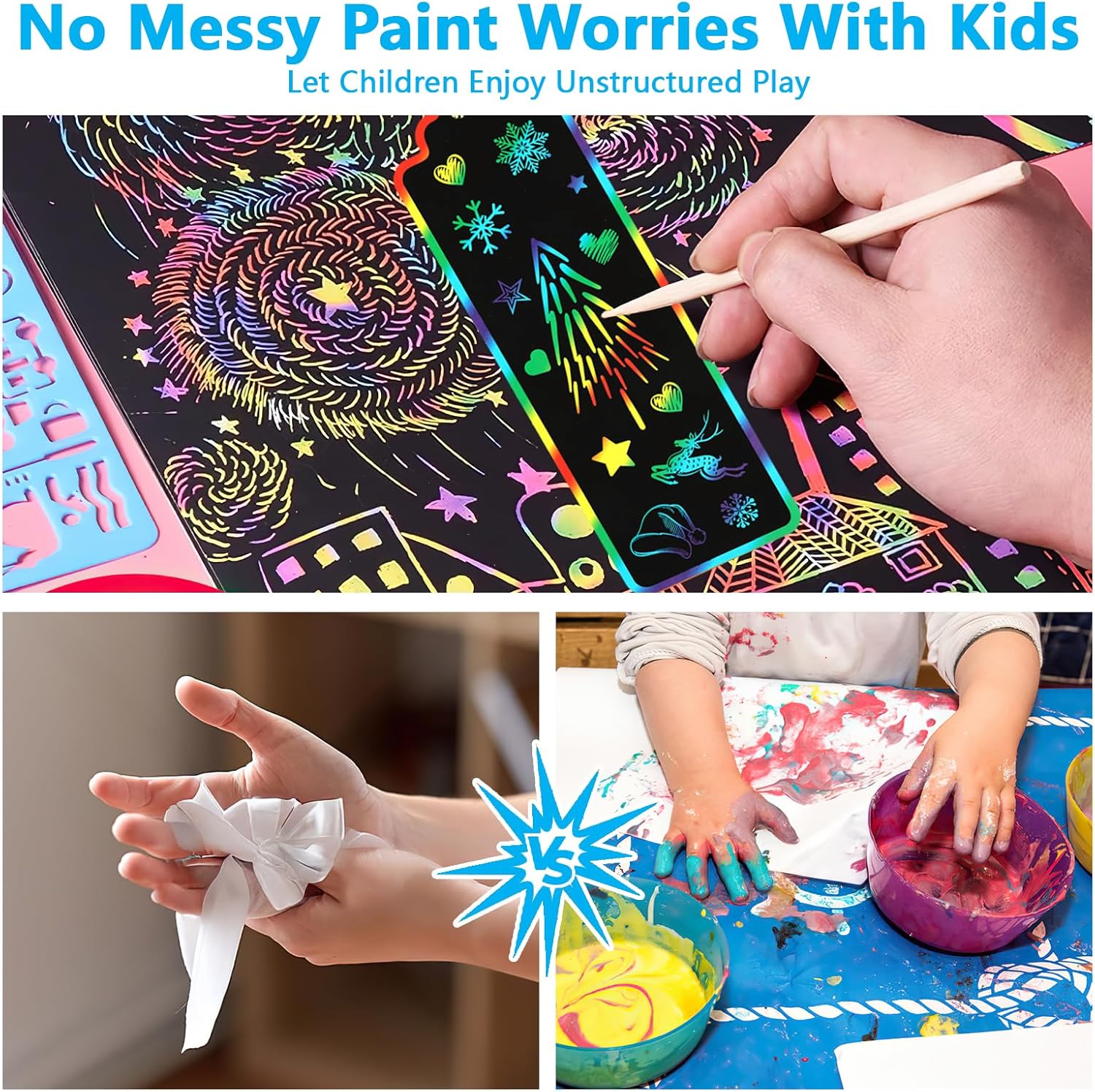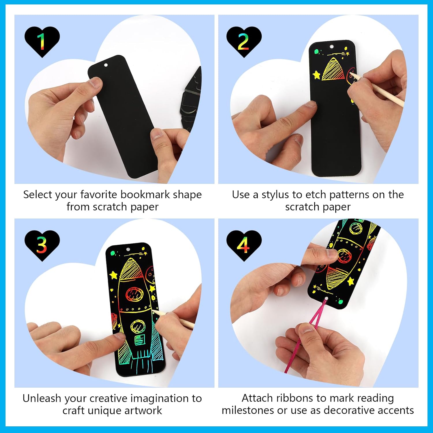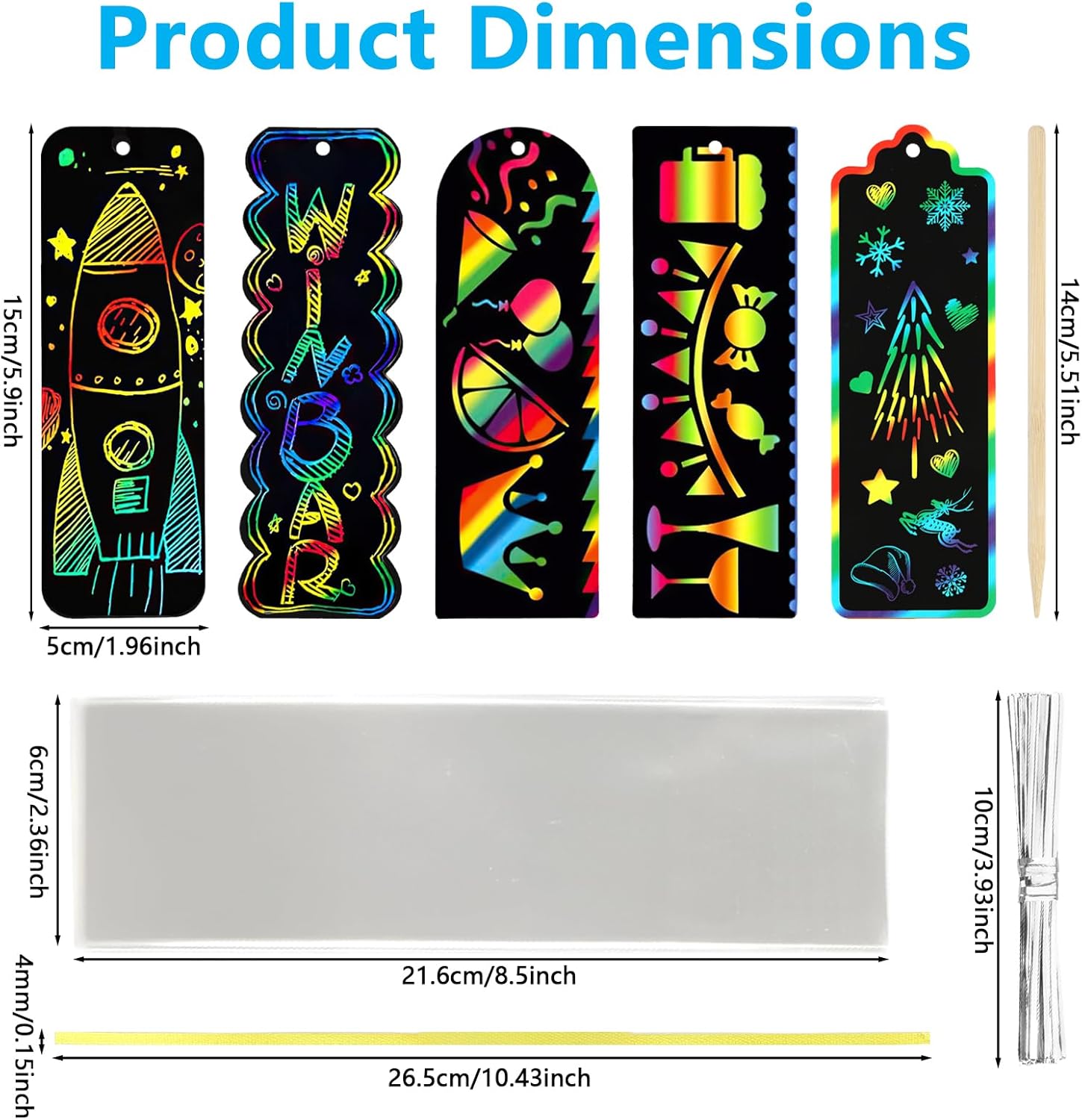 Kit completo per grattare e grattare, 210 pezzi: questi kit artigianali includono 40 segnalibri arcobaleno scratch art (dimensioni 15,2 x 5,1 cm), 40 strumenti per graffiare, 40 corde di raso colorate, 40 sacchetti trasparenti (dimensioni 21,6 x 5,8 cm) e 50 fascette metalliche argentate (lunghezza 10,2 cm) Materiale affidabile: carta da grattare arcobaleno realizzata in cartoncino pesante, questi segnalibri magici sono neri sulla superficie che rivela vivaci colori arcobaleno quando graffiati. Gli strumenti per raschiare sono realizzati in bambù, le corde colorate sono realizzate con materiali satinati che possono essere utilizzate dai bambini Facile da usare: utilizzare strumenti di raschiatura per graffiare via la pellicola nera superficiale per rivelare i bellissimi colori arcobaleno. La parte superiore di ogni segnalibro in carta da graffio arcobaleno è dotata di un piccolo foro, il nastro colorato può appendere i loro dipinti per completare un segnalibro artistico creativo Bomboniere: Scratch Art non solo utilizzato come segnalibro, ma anche per regali eid per bambini, artigianato pasquale per bambini, attività regalo ramadan per bambini, questo facile progetto artigianale è perfetto per bambini dai 4 anni in su Diversifica il pensiero del bambino: Scratch Art offre intrattenimento senza schermo, nutre l'immaginazione, l'espressione di sé e la creatività, è perfetto per affinare le abilità di scrittura o disegno per i bambini, godersi arti e mestieri