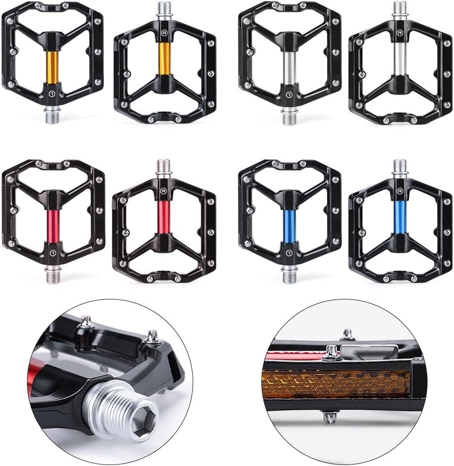 Pedali ad alta velocità: dotati di cuscinetti ad alta velocità, questi pedali per bicicletta offrono un'esperienza di guida fluida ed efficiente. La maggiore resistenza e peso dei pedali durata e sopportare carichi più forti. Design antiscivolo: con un design antiscivolo su entrambi i lati, questi pedali aumentano l'attrito e migliorano l'effetto calpestio, offrono una presa sicura anche durante i viaggi intensi. La piastra riflettente integrata aggiunge una funzione di sicurezza per la guida notturna, riducendo i potenziali rischi. Materiale: realizzato in lega di alluminio, questi pedali sono costruiti per durare nel tempo. La struttura stabile è durevole e quindi una scelta affidabile per gli appassionati di ciclismo. Colori assortiti: disponibile in nero, argento, giallo e blu. Questi pedali possono essere selezionati per adattarsi all'estetica della tua bici o allo stile personale. Il design sottile aggiunge un tocco di raffinatezza alla tua bicicletta.