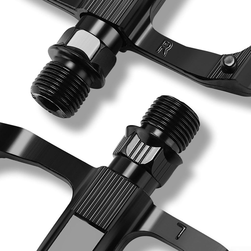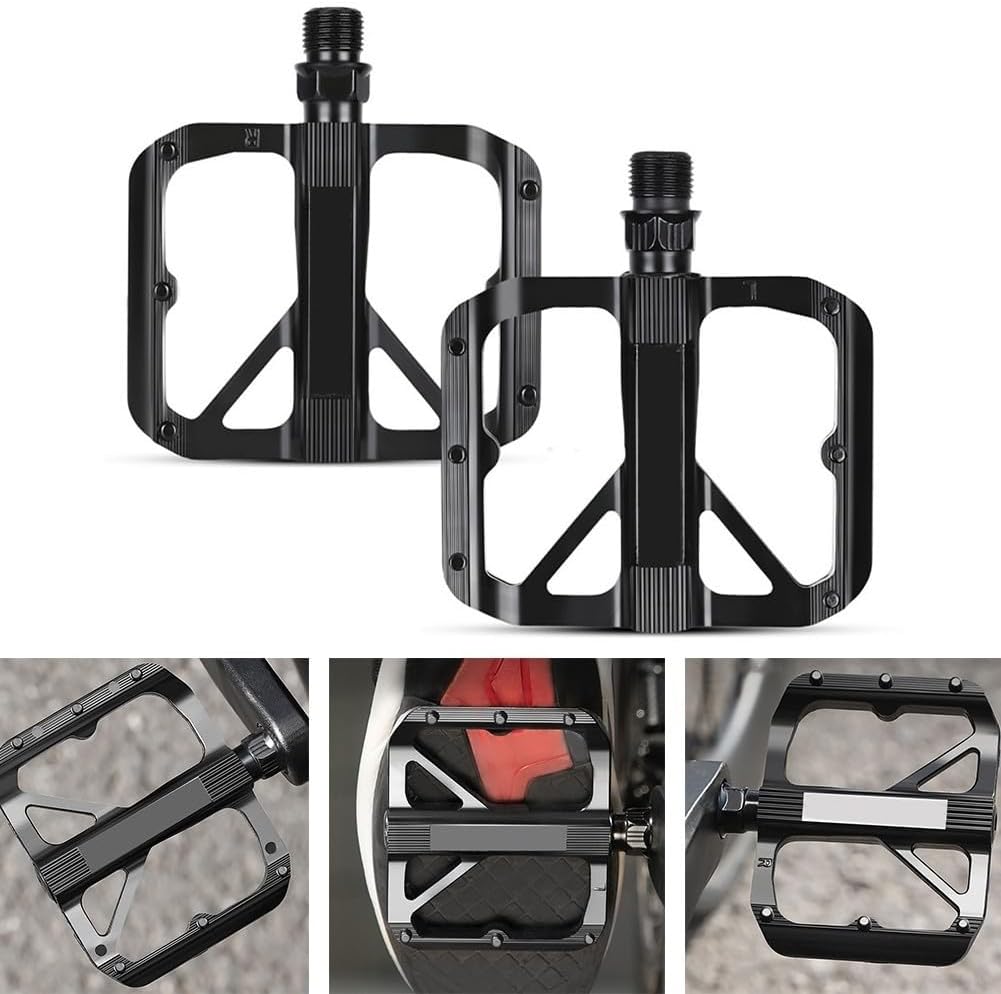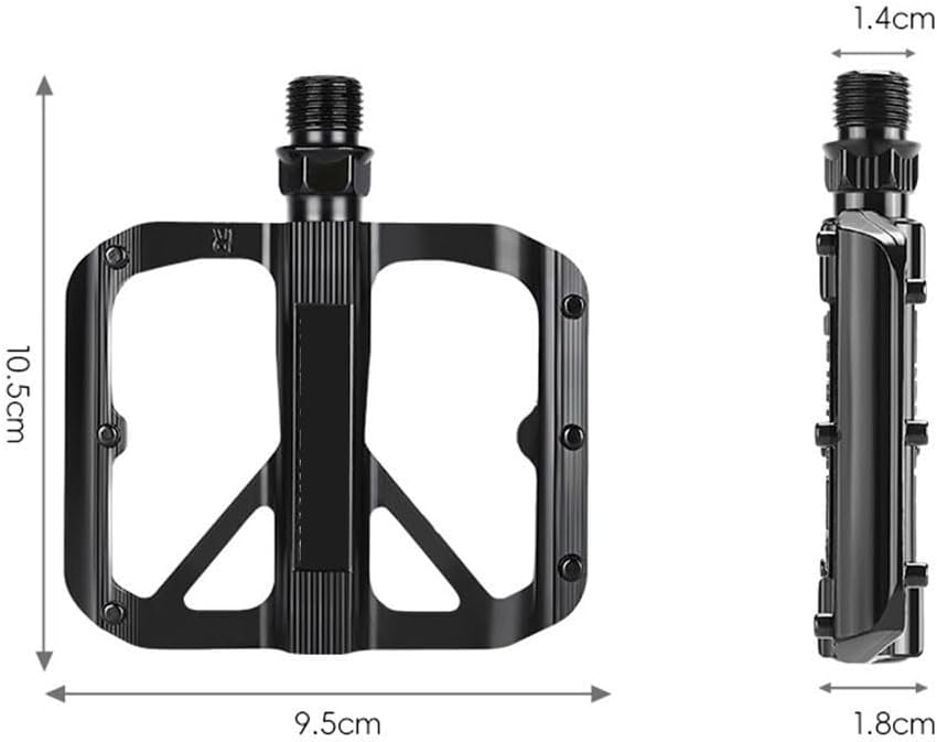 Design leggero in lega di alluminio: realizzati in lega di alluminio, questi pedali per bici sono progettati per essere leggeri, migliorando l'efficienza di guida senza aggiungere peso inutile. [Sistema a tre cuscinetti] Caratterizzati da un sistema a tre cuscinetti, questi pedali rotazione liscia e senza sforzo, consentendo un'esperienza di ciclismo più piacevole sia su mountain bike che su bici da strada. [Battistrada allargato per una migliore presa] Il battistrada allargato offre una presa superiore, che i piedi rimangono saldamente in posizione durante la corsa, sia che tu stia affrontando sentieri o crociera su strada. Struttura scavata: il design inclinato scavato si adatta perfettamente alla pianta dei piedi, promuovendo un migliore trasferimento di potenza e comfort per lunghe pedalate. Si prega di fare riferimento alla tabella delle taglie prima dell'acquisto per la vestibilità perfetta per le vostre esigenze di ciclismo.