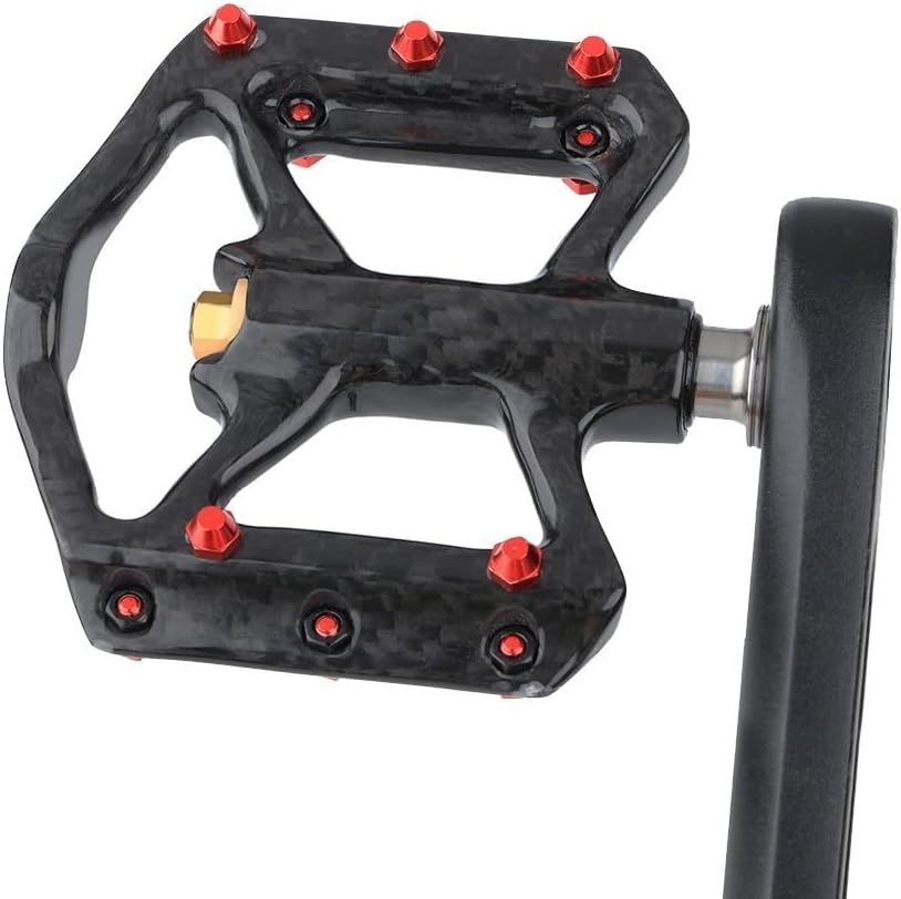 Design ultra leggero in fibra di carbonio: pesa solo 180 g per coppia, questi pedali sono realizzati in fibra di carbonio e materiali in lega, sia resistenti che leggeri per le tue avventure in bicicletta. [Tecnologia antiscivolo] Ogni pedale è dotato di 10 chiodi antiscivolo in lega di alluminio, che forniscono una presa e una stabilità superiori per migliorare la tua esperienza di ciclismo, soprattutto su terreni difficili. [Protezione sigillata] Dotato di 3 cuscinetti sigillati più DU, questi pedali impediscono efficacemente l'ingresso di polvere e pioggia, durata e funzionamento regolare in varie condizioni atmosferiche. Ampio supporto per piattaforma: con una generosa larghezza di 99 mm, l'ampio design della piattaforma distribuisce uniformemente la pressione sui piedi, offrendo un'esperienza di guida più confortevole durante le lunghe corse. Si prega di fare riferimento alla tabella delle taglie per una vestibilità corretta prima dell'acquisto.