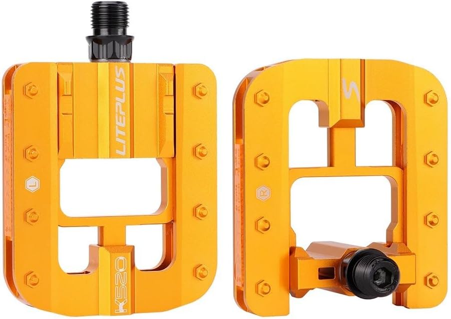 Design pieghevole: questi pedali per bicicletta sono progettati per essere pieghevoli, consentendo una facile conservazione e risparmio di spazio. Con una sola mano, possono essere rapidamente piegati, fornendo comodità. Materiale in lega di alluminio: realizzati in lega di alluminio, questi pedali sono estremamente e di lunga durata. La parte del piede è lavorata a CNC con una maggiore resistenza, rendendoli leggeri ma in grado di sopportare carichi pesanti. Presa e sicurezza migliorate: dotati di un design antiscivolo su entrambi i lati, questi pedali offrono un'eccellente presa e un effetto calpestio. Il maggiore attrito aiuta a prevenire lo scivolamento durante le corse. Inoltre, la piastra riflettente garantisce visibilità e riduce i rischi per la sicurezza, soprattutto durante le corse notturne. Versatili e facili da installare: questi pedali sono disponibili nei colori nero, argento, oro e rosso, fornendo opzioni per abbinarsi a varie biciclette. Sono compatibili con un diametro della filettatura di 14 mm, rendendo l'installazione un gioco da ragazzi. Contenuto della confezione: la confezione include un paio di pedali in lega di alluminio, avrai tutto il necessario per migliorare la tua esperienza in bicicletta.
