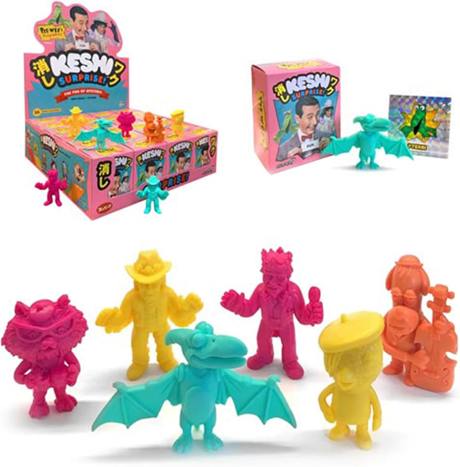 KESHI SURPRISE: Sono tutti i tuoi personaggi preferiti di Pee-wee's Playhouse in forma Keshi Surprise! 6 POSSIBILI PERSONAGGI: I possibili personaggi da ottenere includono Cowboy Curtis, Pterri, King of Cartoons, Cool Cat, Dirty Dog o Chicky Baby. Quale riceverai? La selezione è casuale. Dimensioni da collezione: ogni figura misura circa 4,4 cm di altezza, la dimensione perfetta per la scrivania dell'ufficio, la libreria di casa e molto altro ancora! Ottima idea regalo: aggiungi questa figura alla tua collezione personale o regalala al fan di Pee-wee's Playhouse nella tua vita!