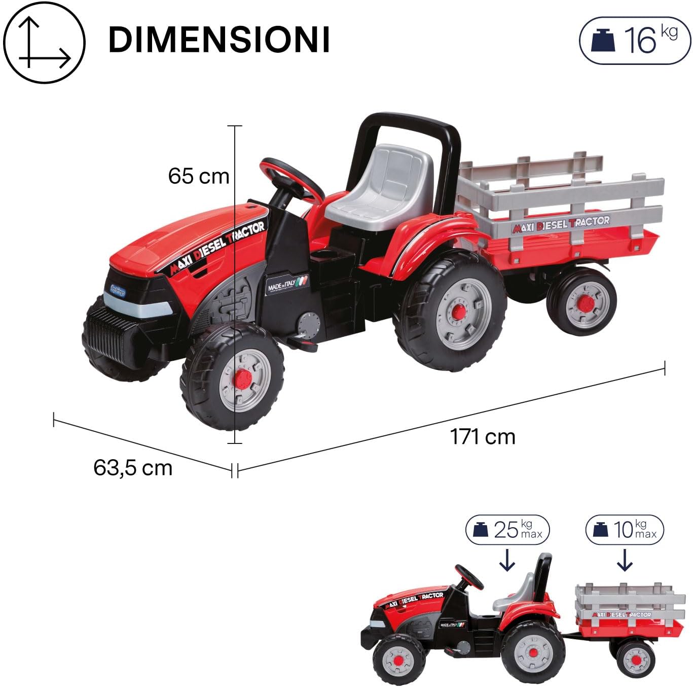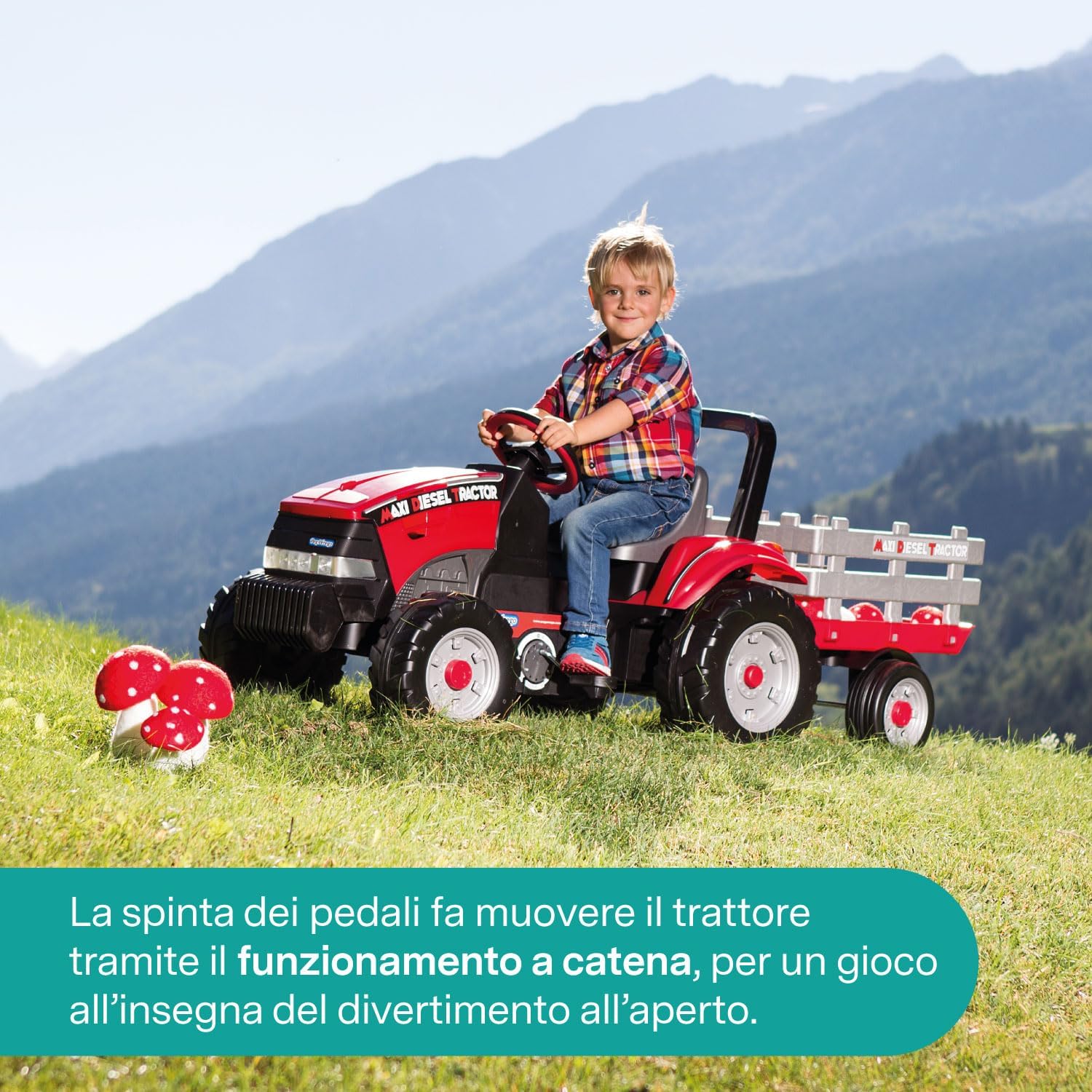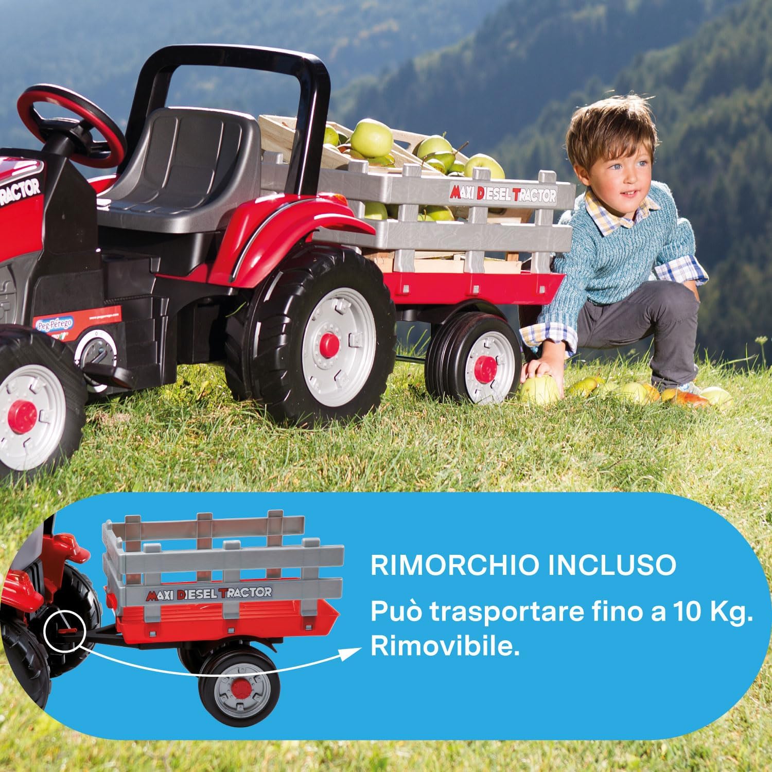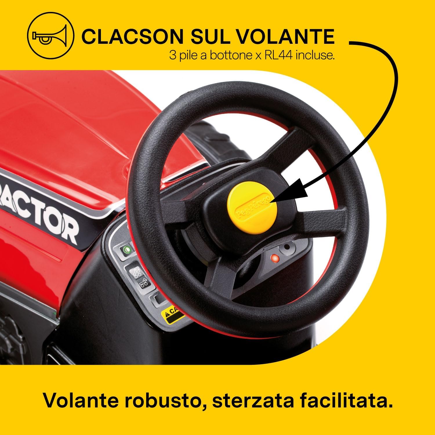 TRATTORE A PEDALI CON RIMORCHIO: il potente trattore che fa scatenare il divertimento ottimo per trasportare di tutto e giocare di più, adatto a bambini dai 2 anni in su FUNZIONAMENTO A CATENA: ottimo per trascorrere le giornate all'aria aperta inventando giochi divertenti RIMORCHIO RIMOVIBILE: può contenere fino a 10 kg di peso, con 3 sponde effetto legno e fondo antisdrucciolo SEDILE E PEDALIERA REGOLABILI: doppia regolazione per adattarsi alle diverse esigenze di ogni bambino CLACSON SUL VOLANTE: divertente e facile da usare per i piccoli agricoltori VOLANTE ROBUSTO: per una sterzata facilitata e maggiore controllo VANO PORTABIBITE: comodo e pratico per avere sempre una bevanda a portata di mano